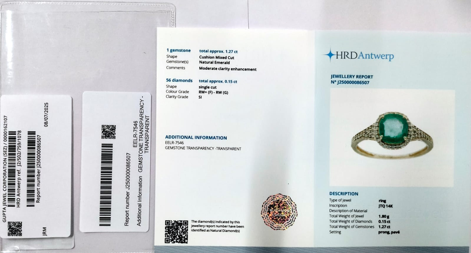 1.42 Ct Cushion Mixed Cut Natural Emerald 14K Gold Ring