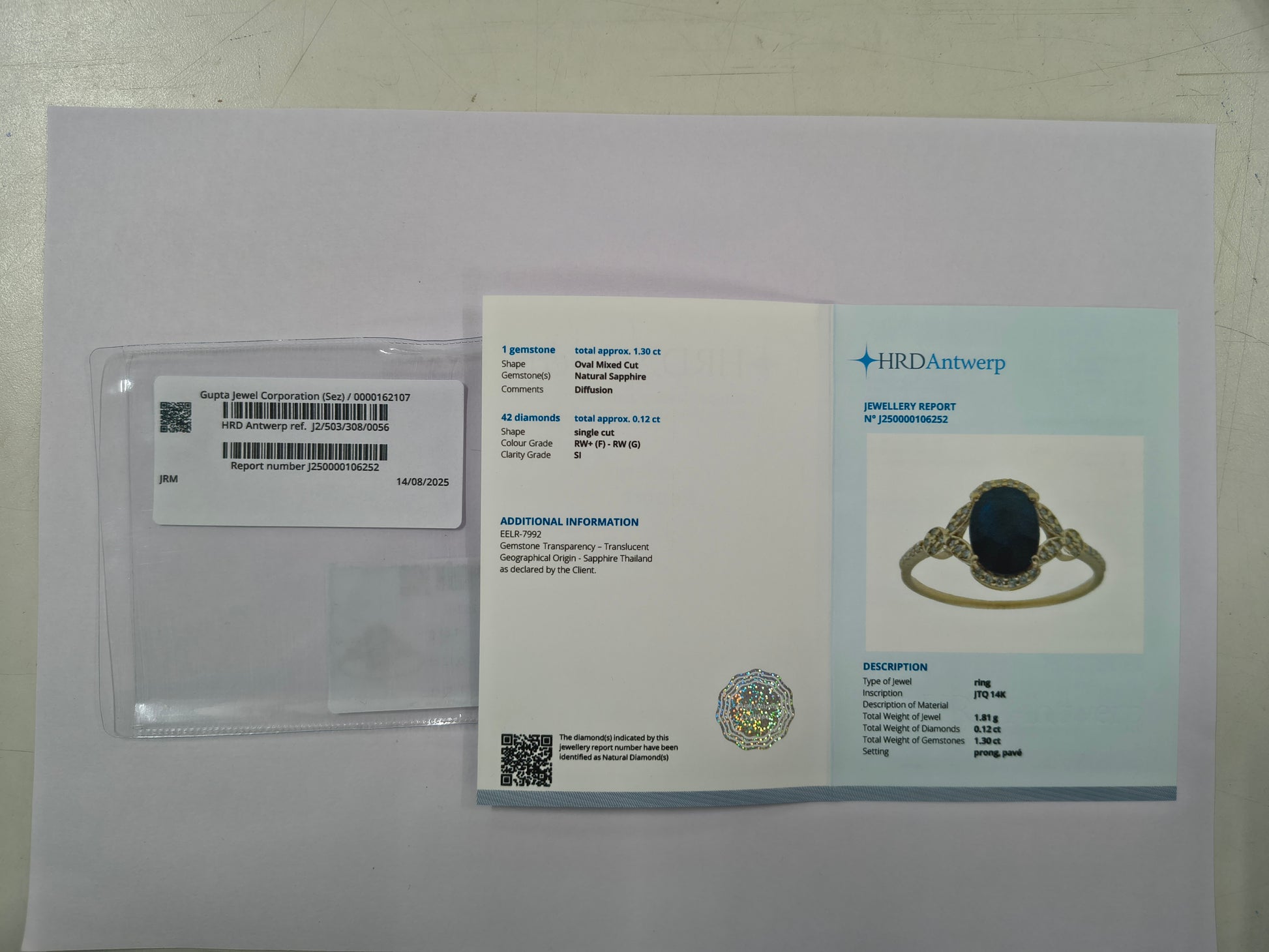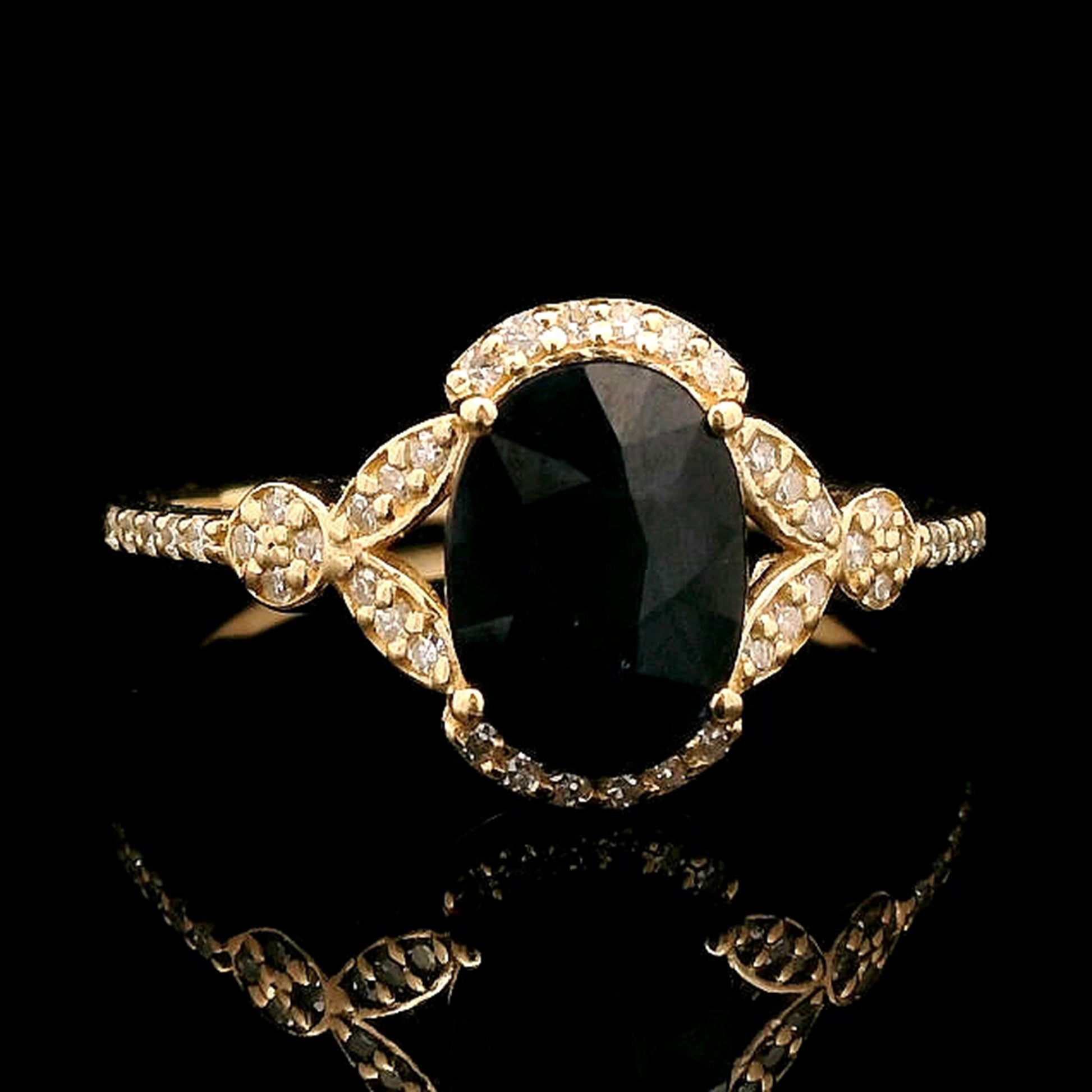 1.42 Ct Oval Mixed Cut Natural Sapphire 14K Gold Ring
