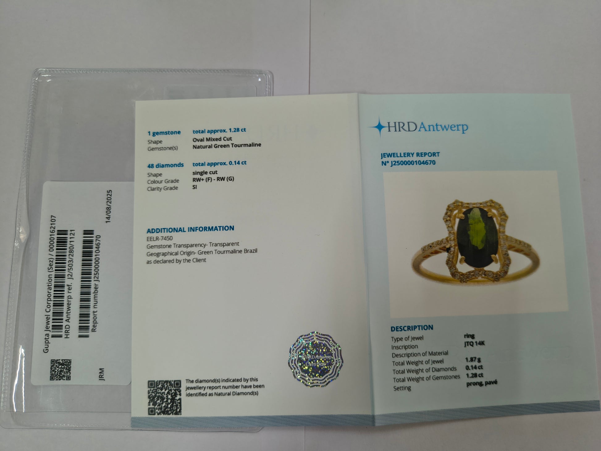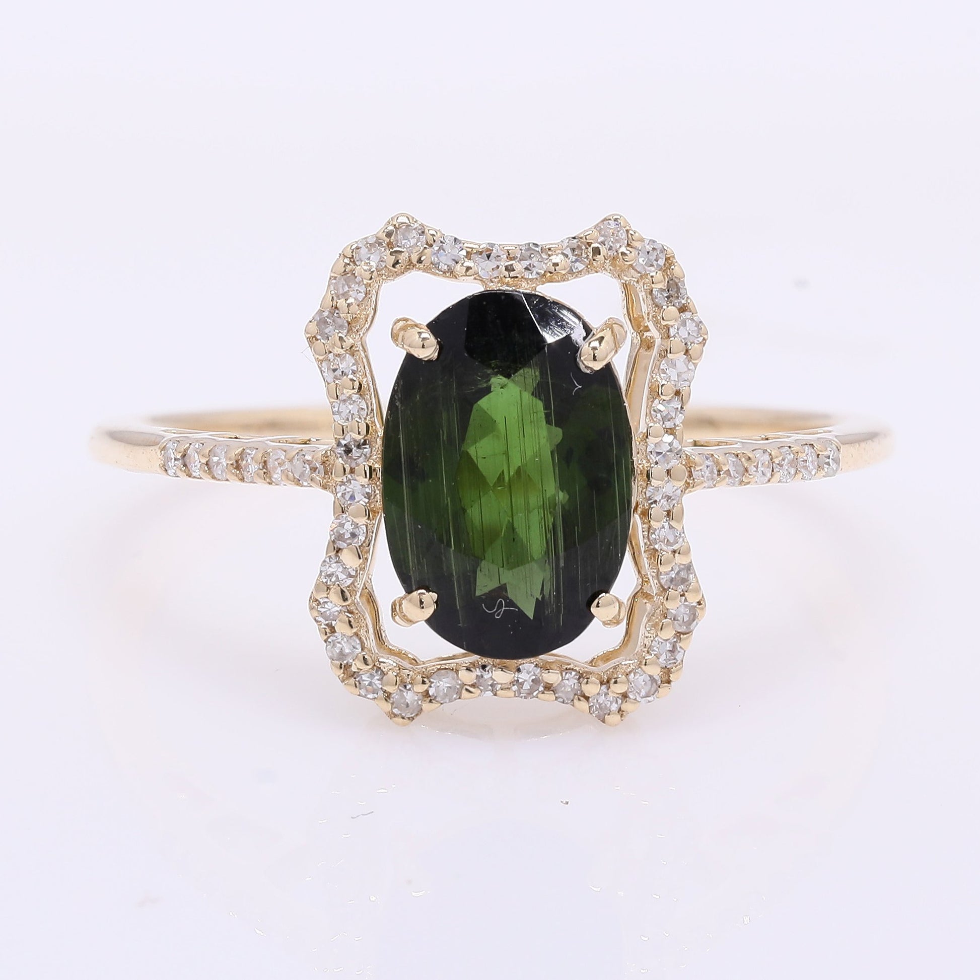 1.42 Ct Oval Mixed Cut Natural Tourmaline 14K Gold Ring