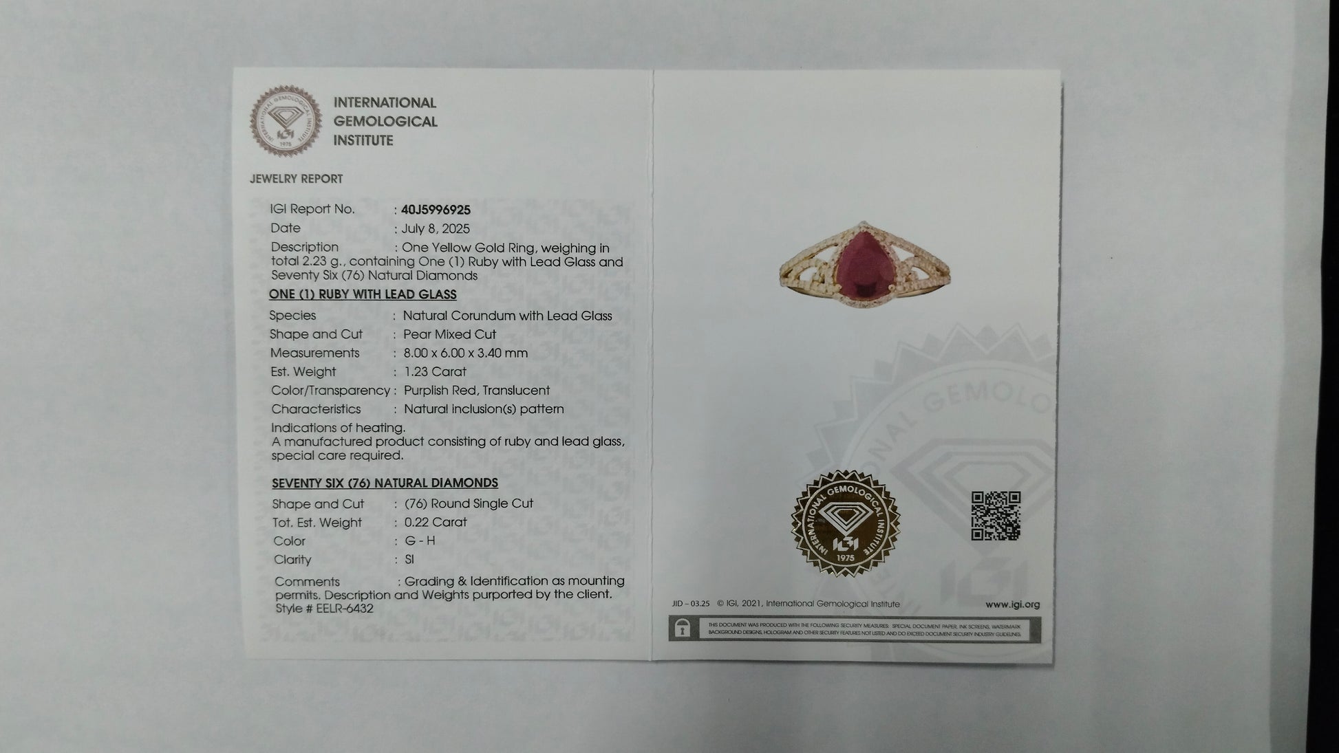 1.45 Ct Pear Mixed Cut Natural Corundum Ruby 14K Gold Ring