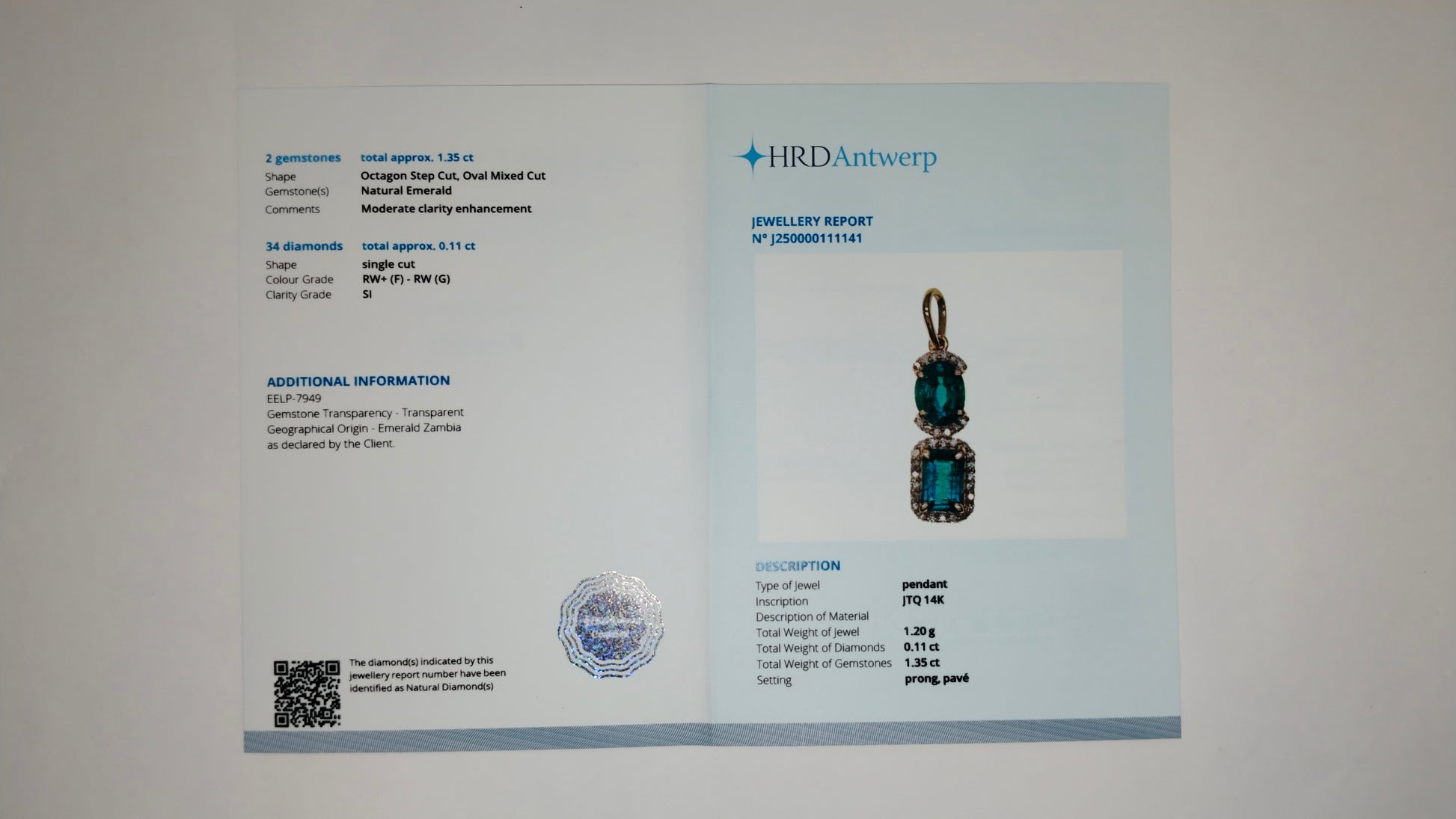 1.46 Ct Octagon Step Cut, Oval Mixed Cut Natural Emerald 14K Gold Pendant