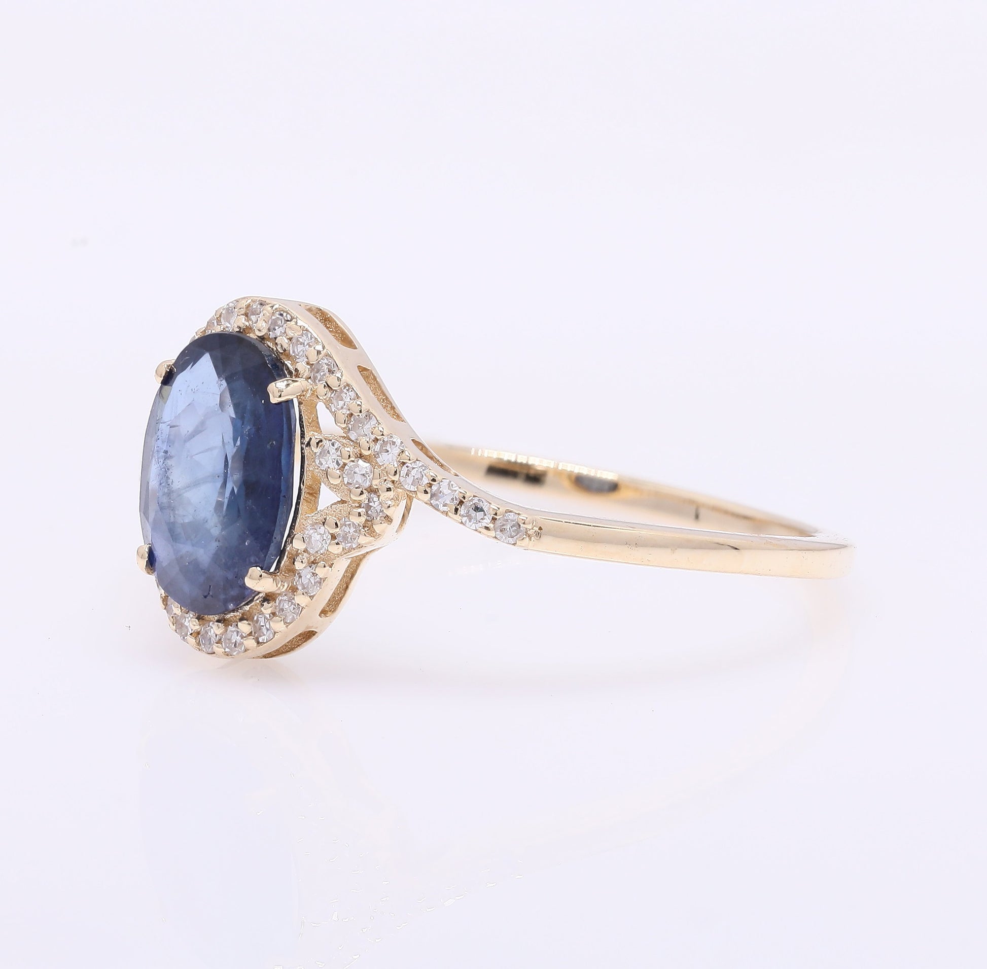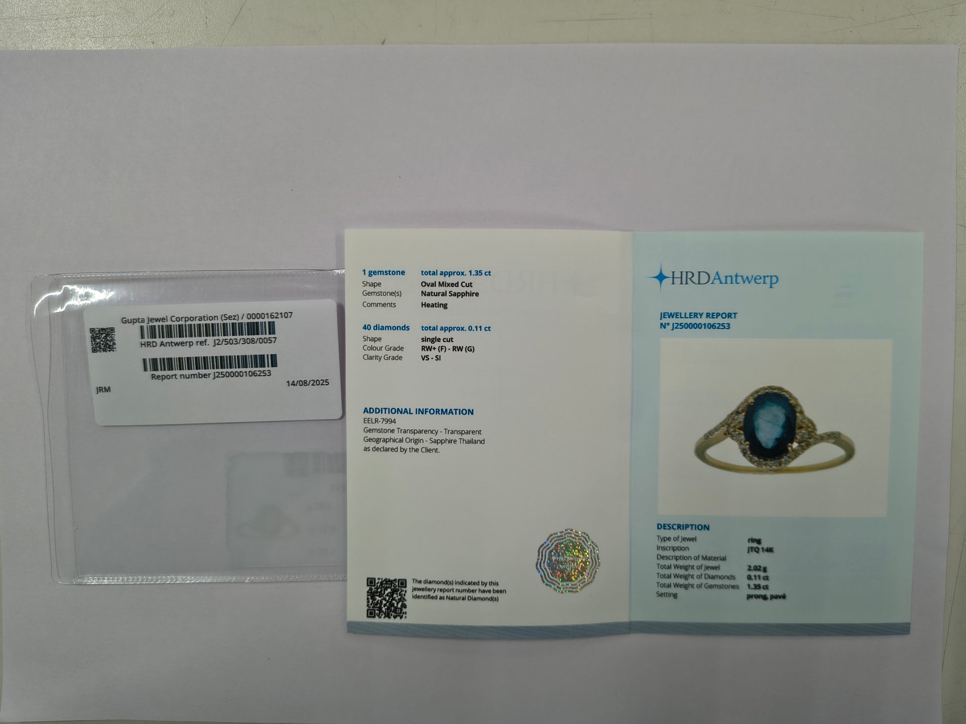 1.46 Ct Oval Mixed Cut Natural Sapphire 14K Gold Ring