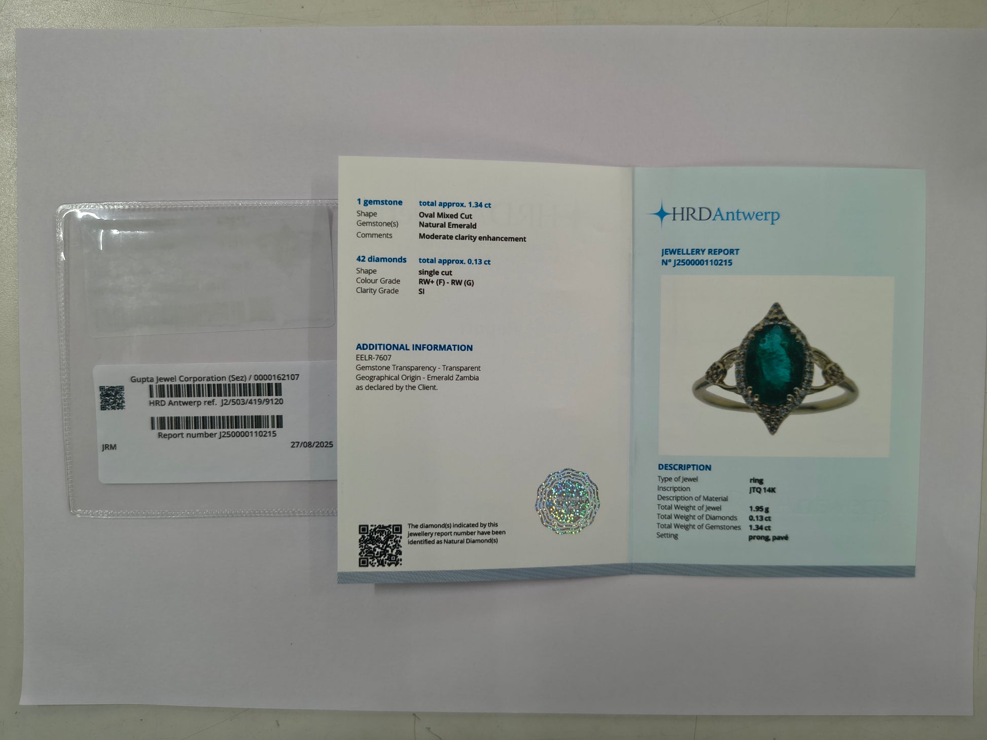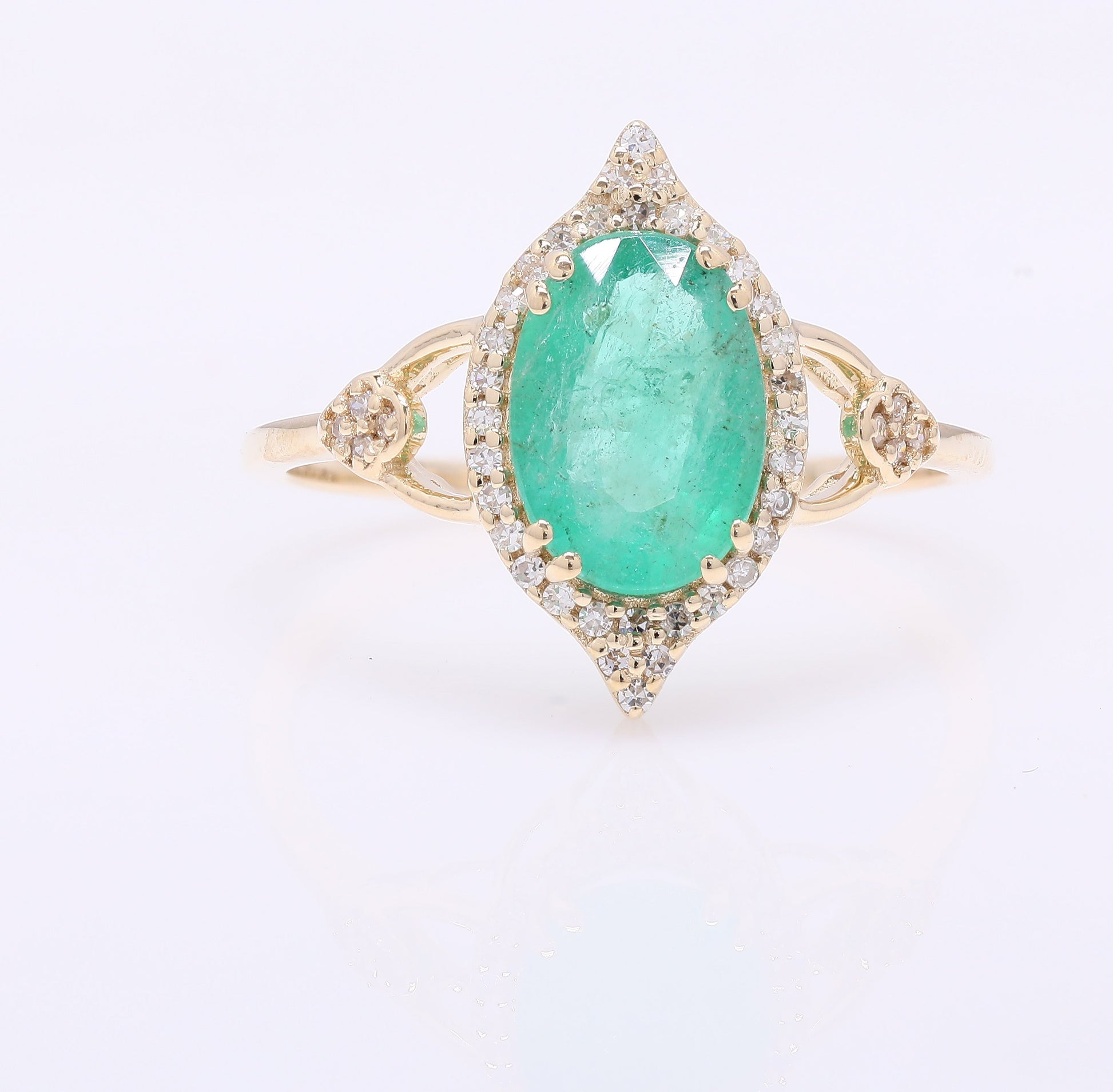 1.47 Ct Oval Mixed Cut Natural Emerald 14K Gold Ring
