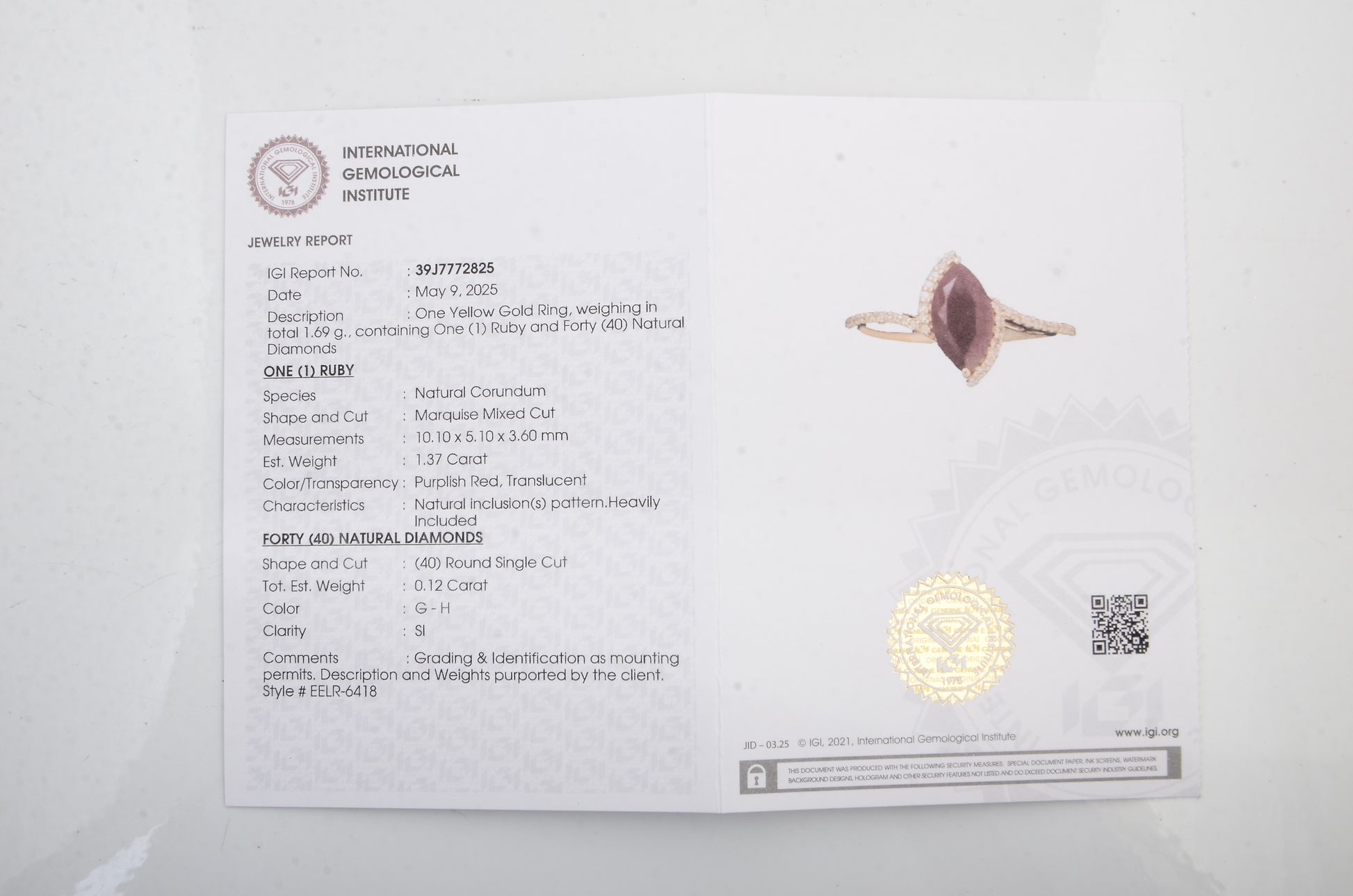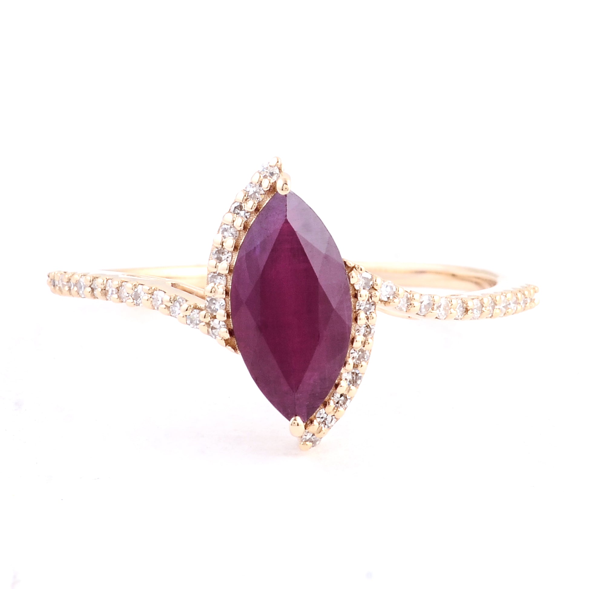 1.49 Ct Marquise Mixed Cut Natural Codundum Ruby 14K Gold Ring