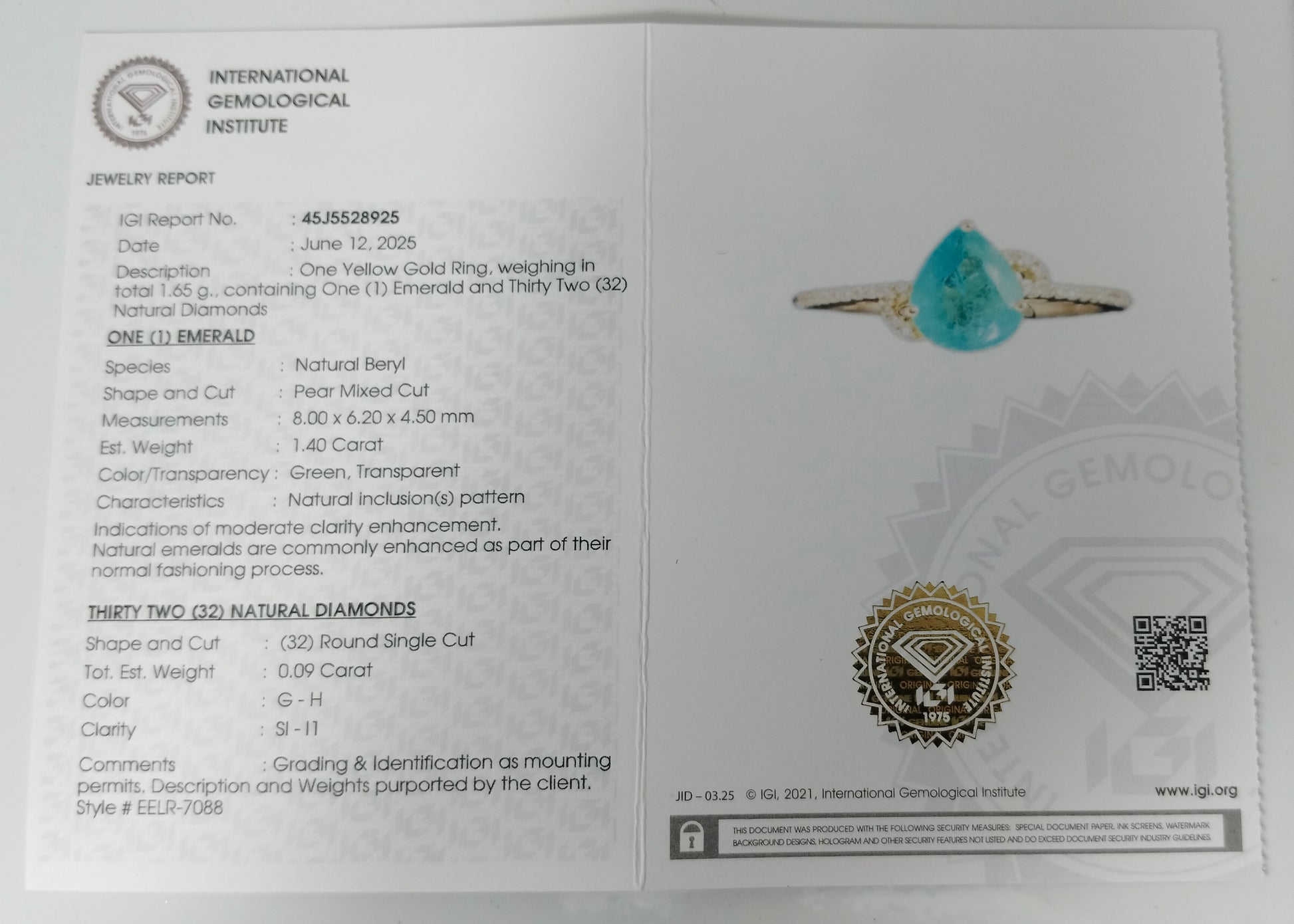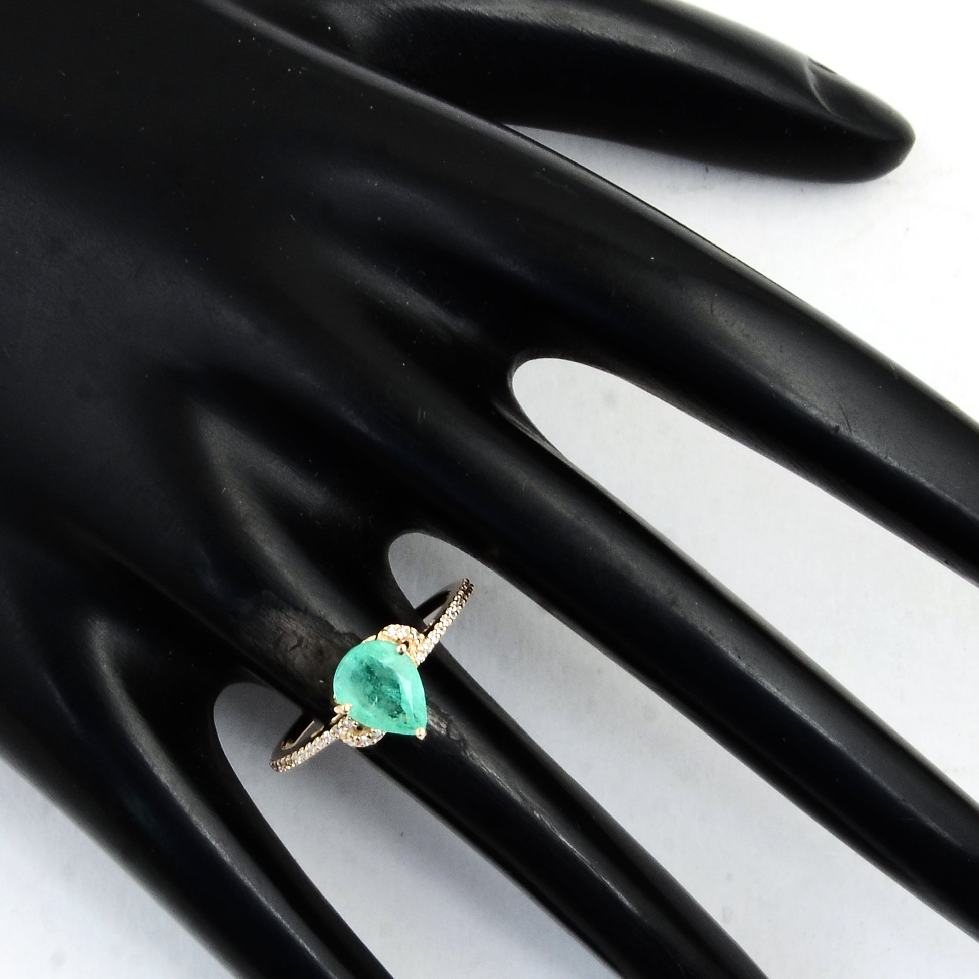 1.49 Ct Pear Mixed Cut Natural Beryl Emerald 14K Gold Ring