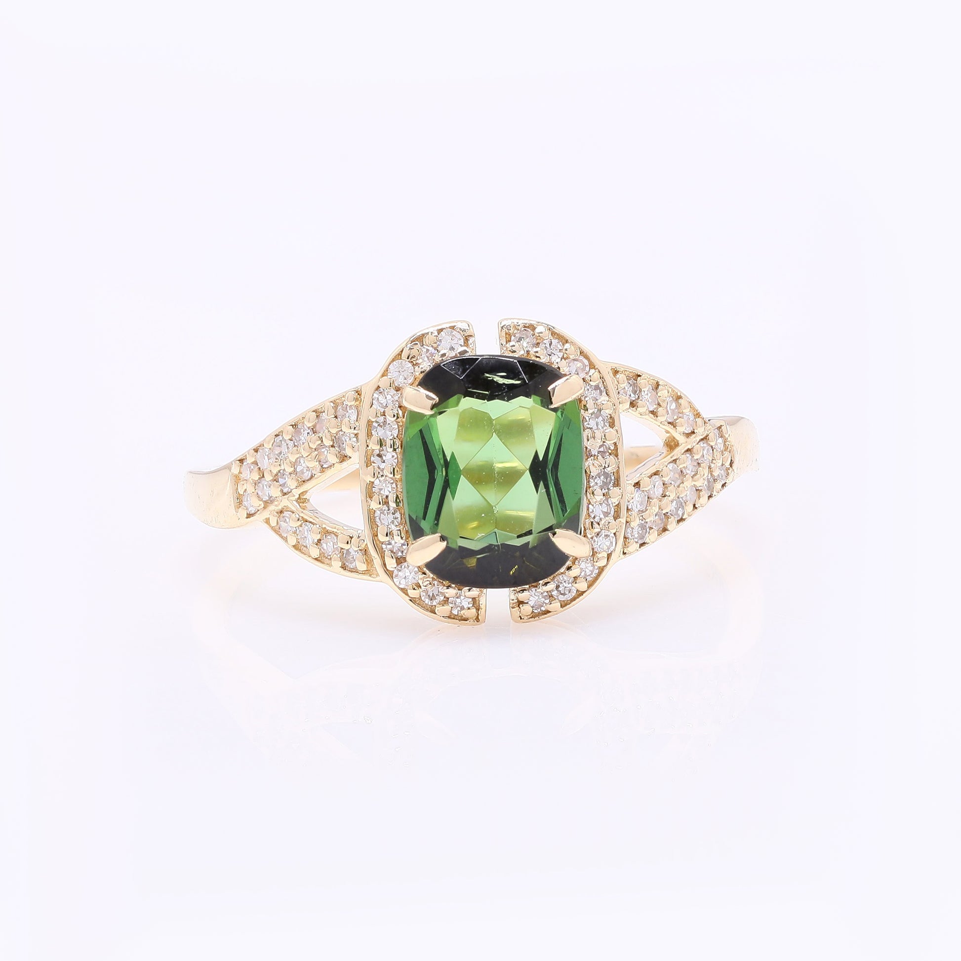 1.50 Ct Cushion Mixed Cut Natural Green Tourmaline 14K Gold Ring