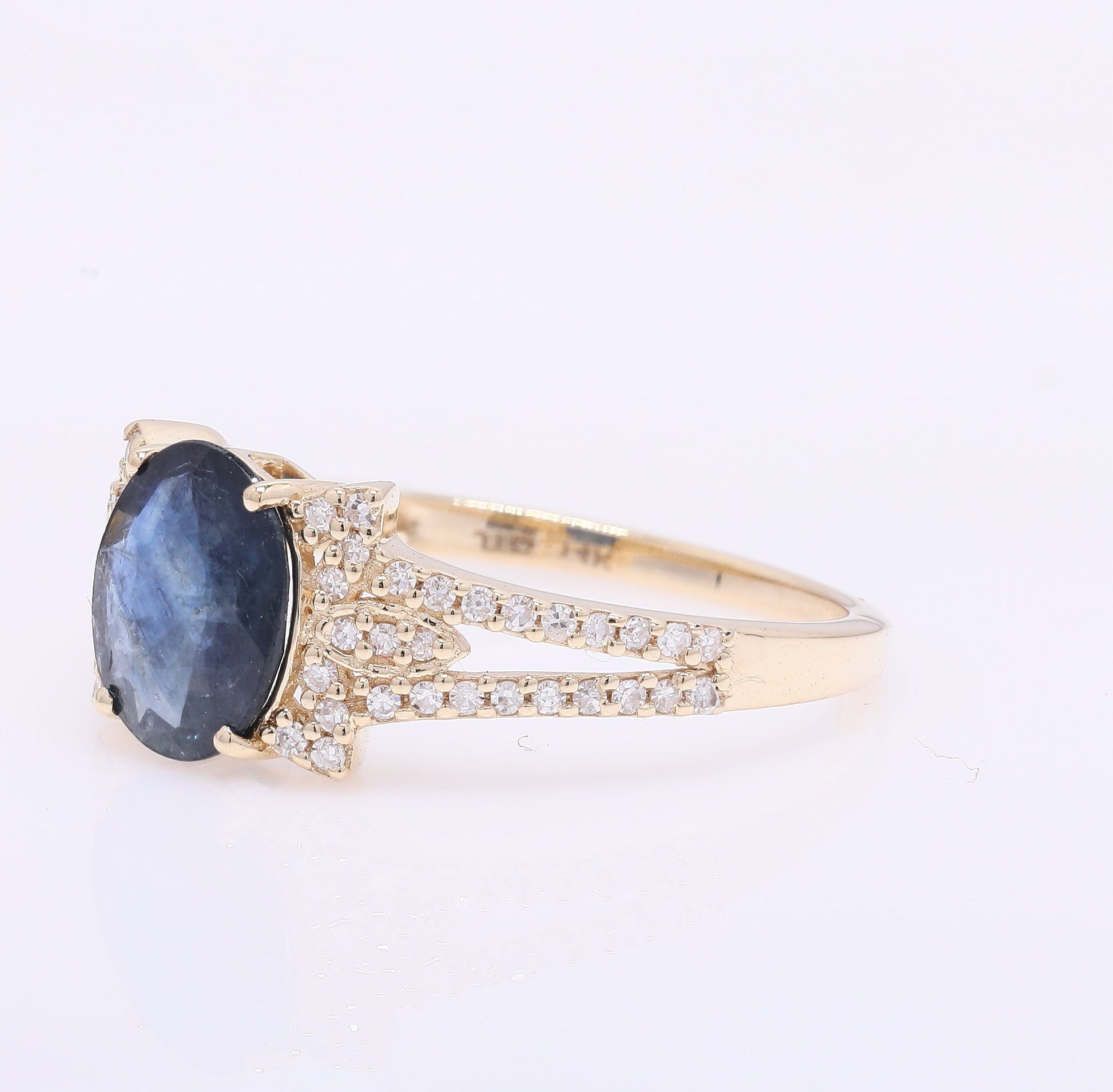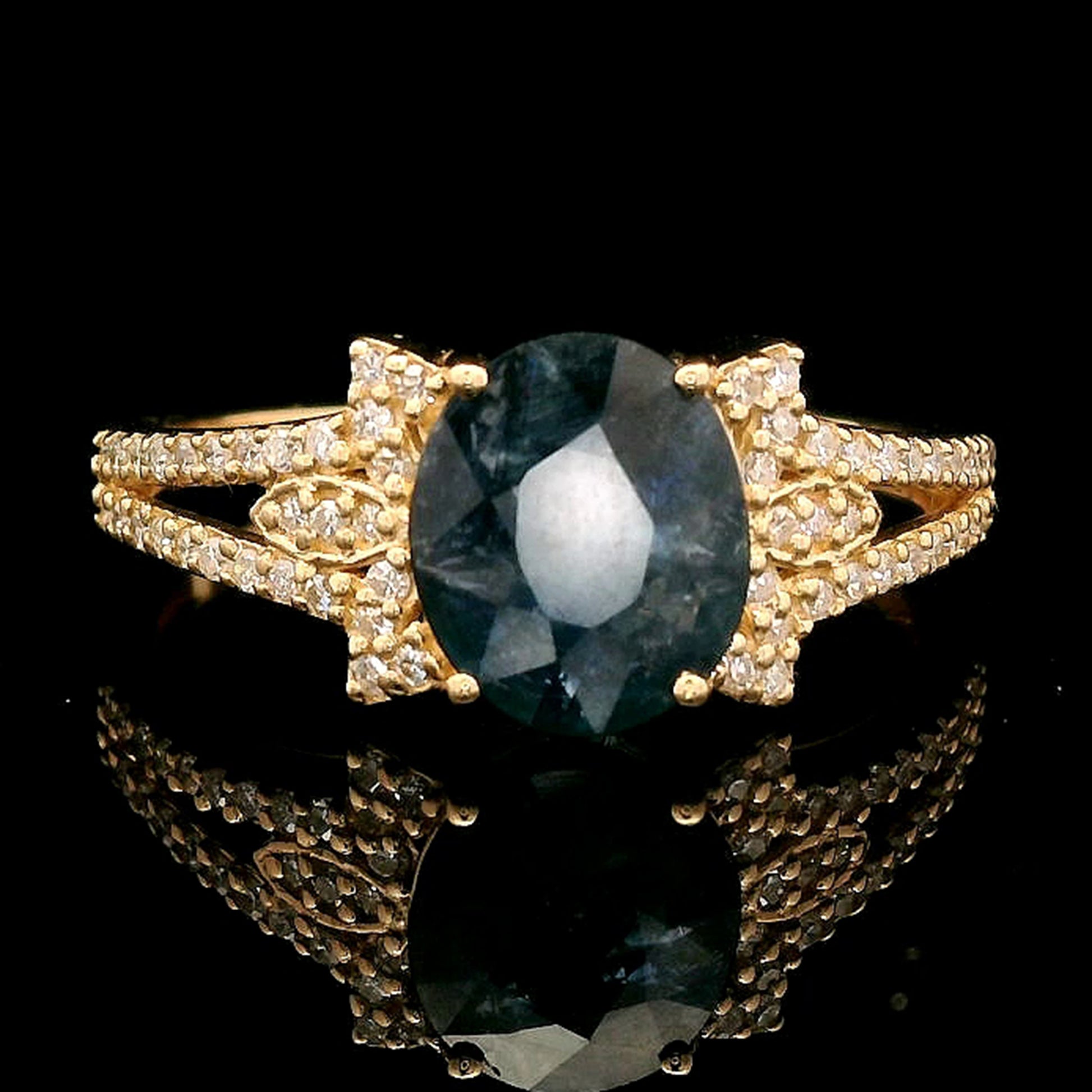 1.50 Ct Oval Mixed Cut Natural Sapphire 14K Gold Ring