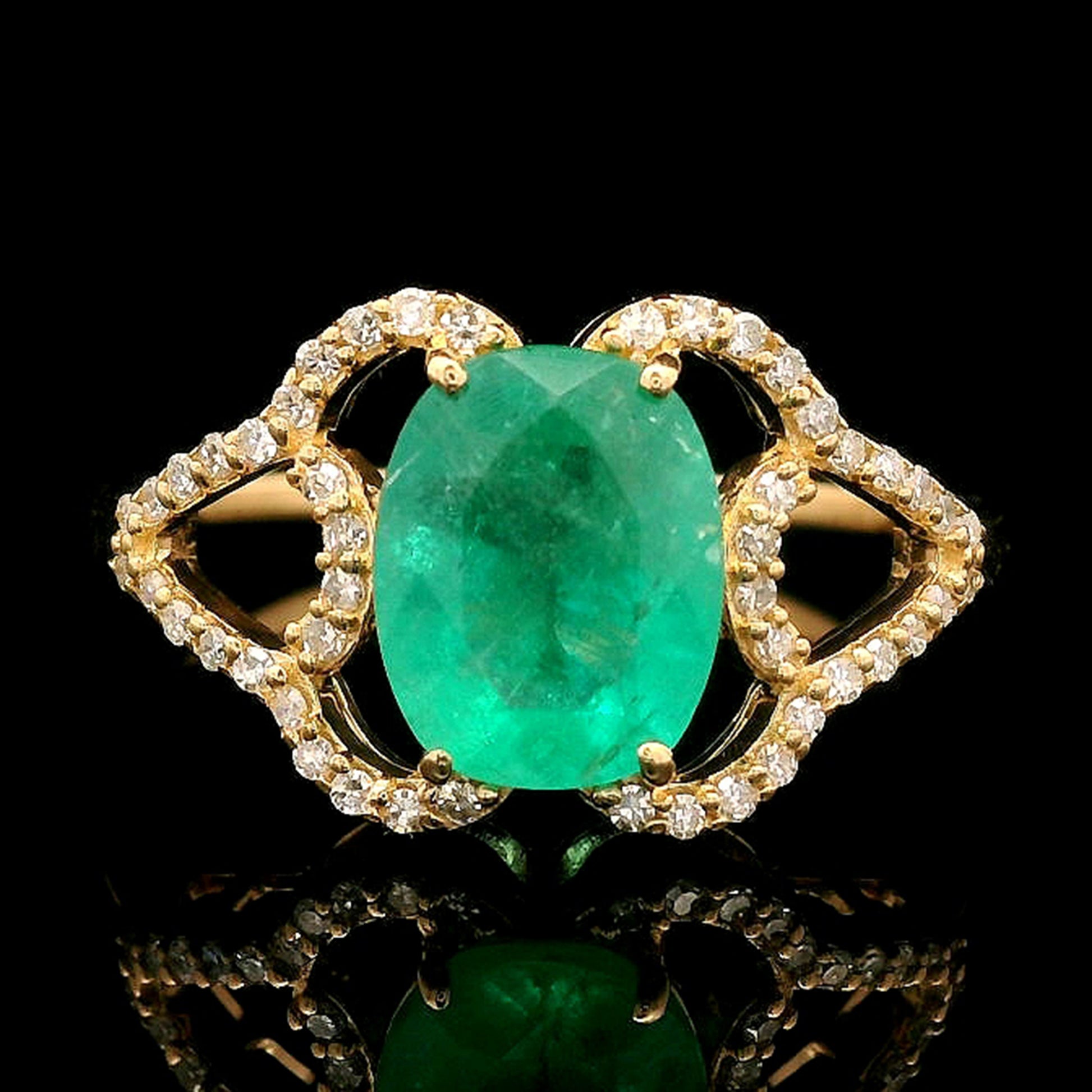 1.51 Total Carat Natural Emerald 14K Gold Ring