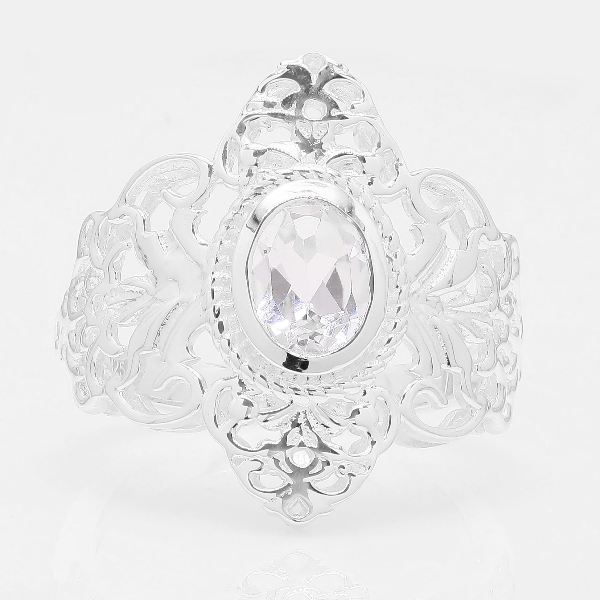 1.51 Ct Oval White Topaz 925 Silver Ring