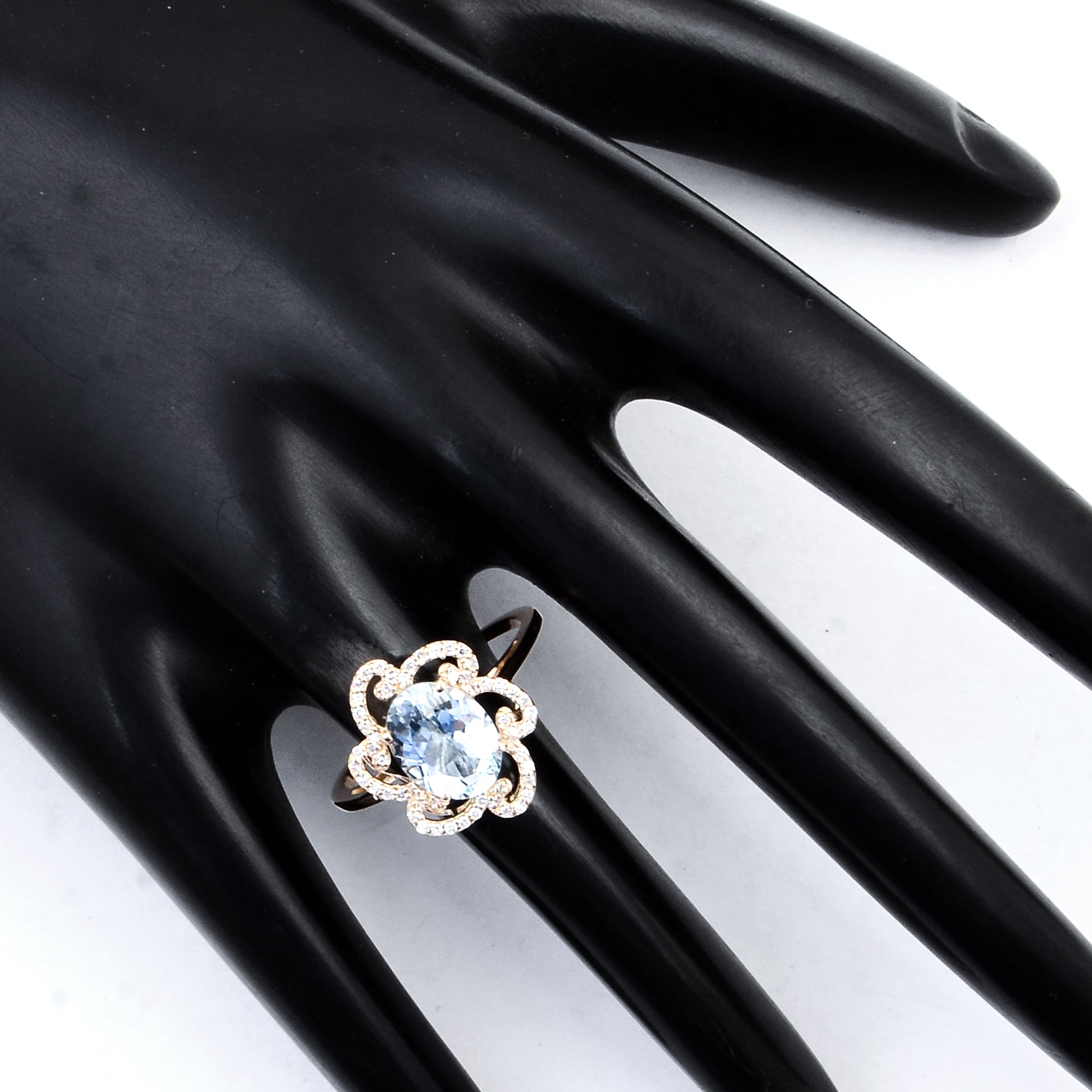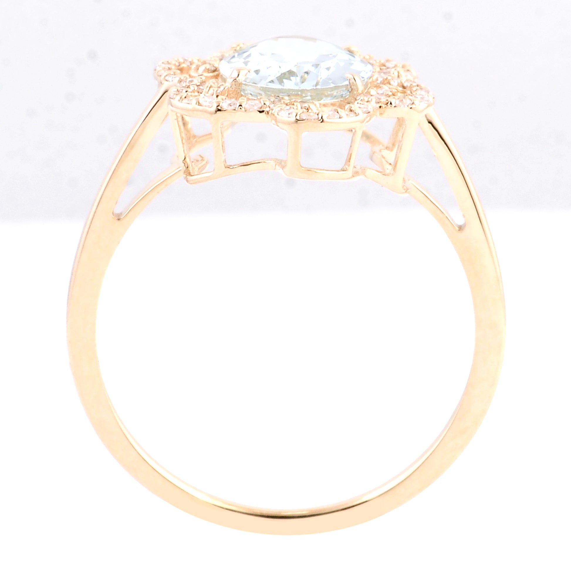 1.52 Ct Oval Mixed Cut Natural Beryl Aquamarine 14K Gold Ring