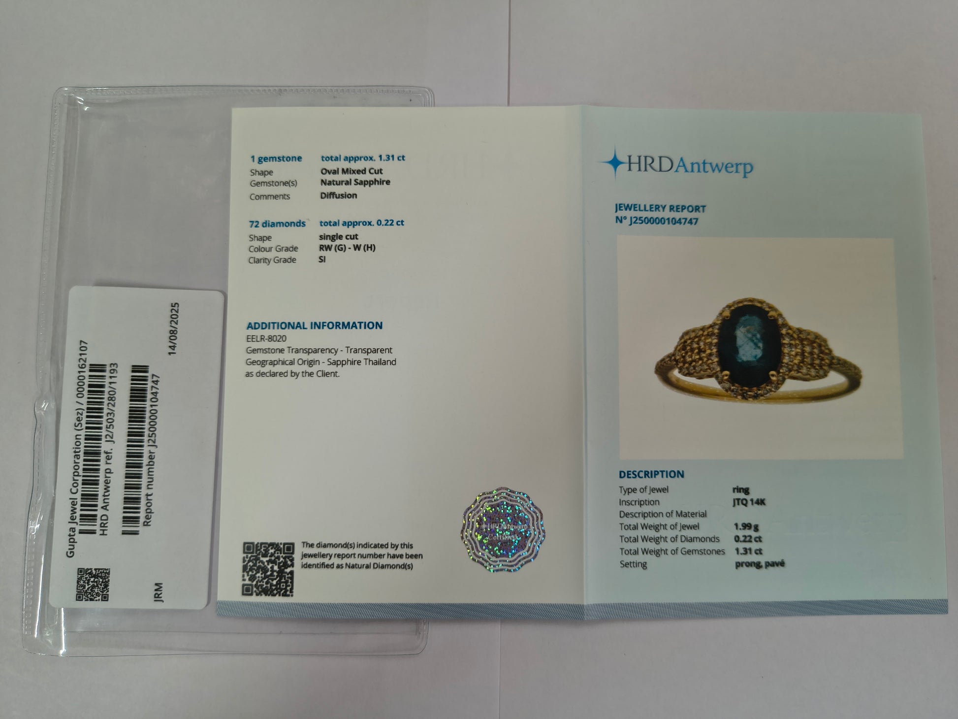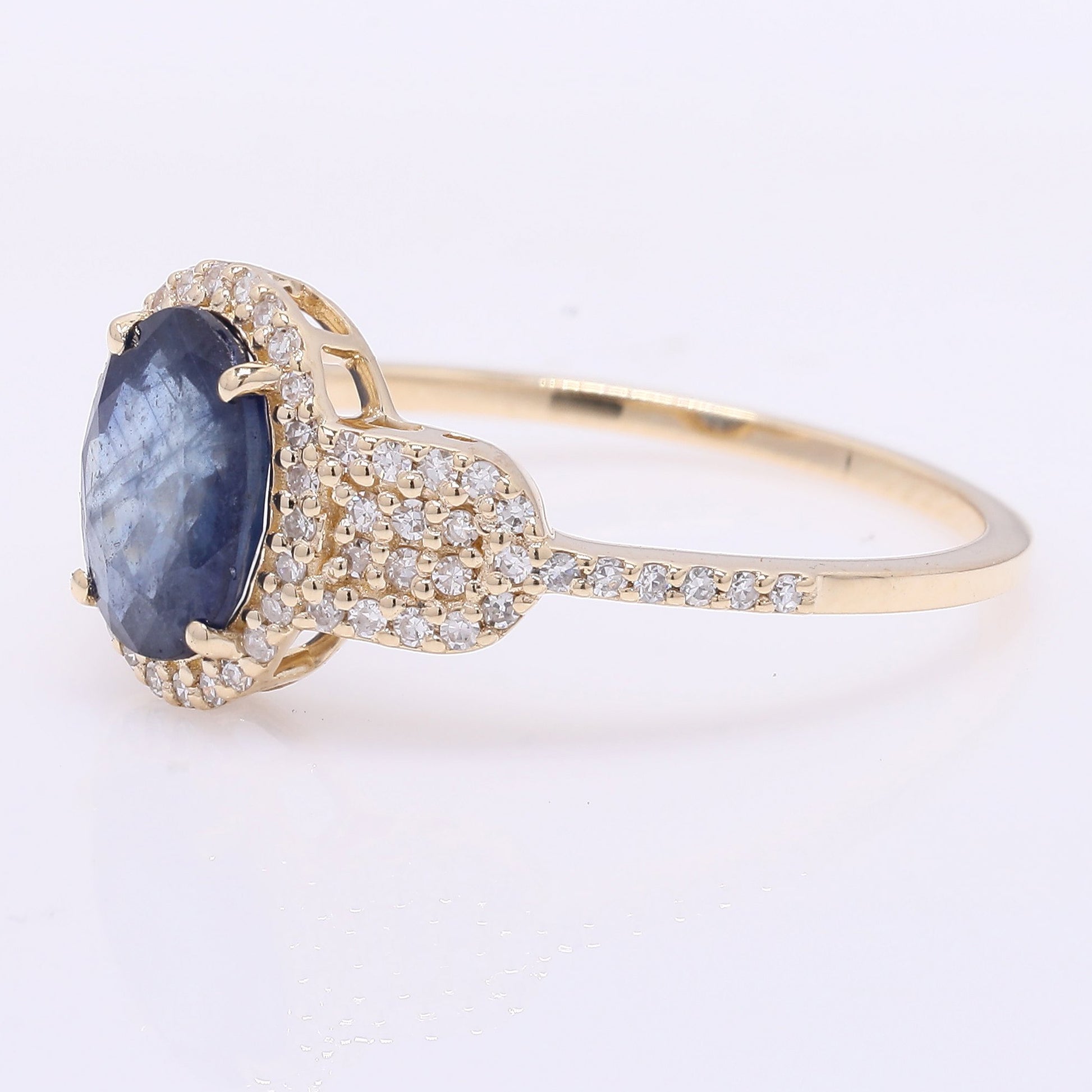 1.53 Ct Oval Mixed Cut Natural Sapphire 14K Gold Ring