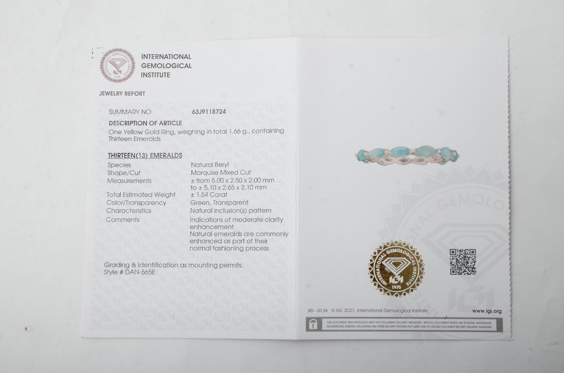 - Lab Name: International Gemological Institute (IGI)