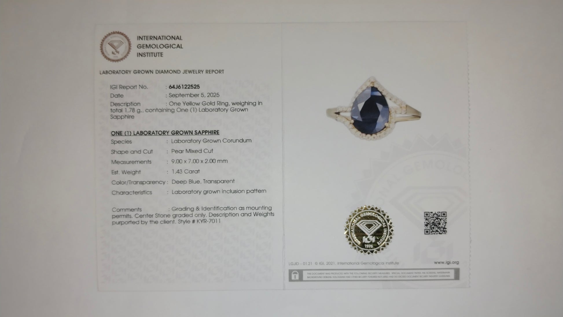 1.54 Ct Pear Mixed Cut Lab Grown Sapphire 14K Gold Ring
