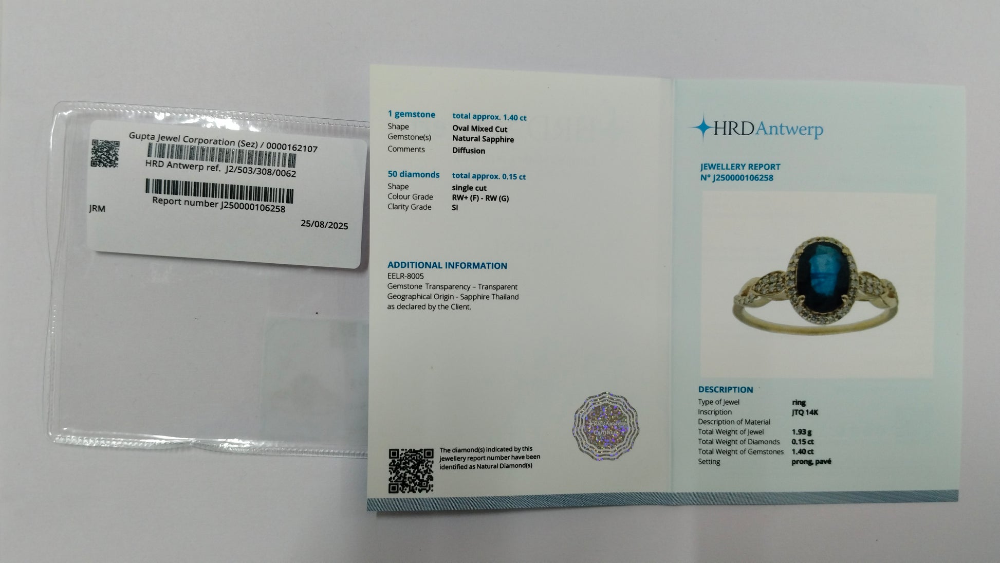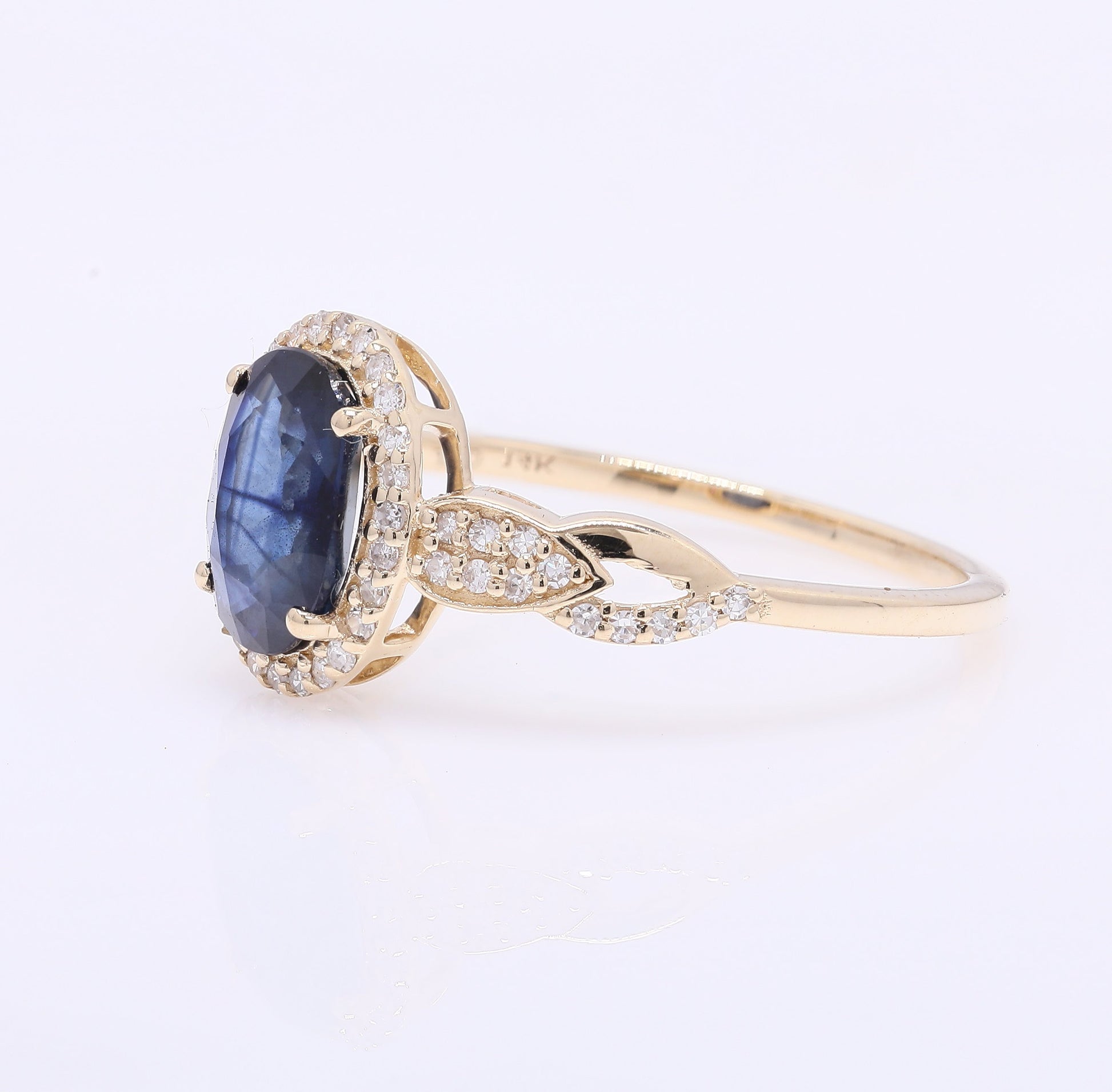 1.55 Ct Oval Mixed Cut Natural Sapphire 14K Gold Ring