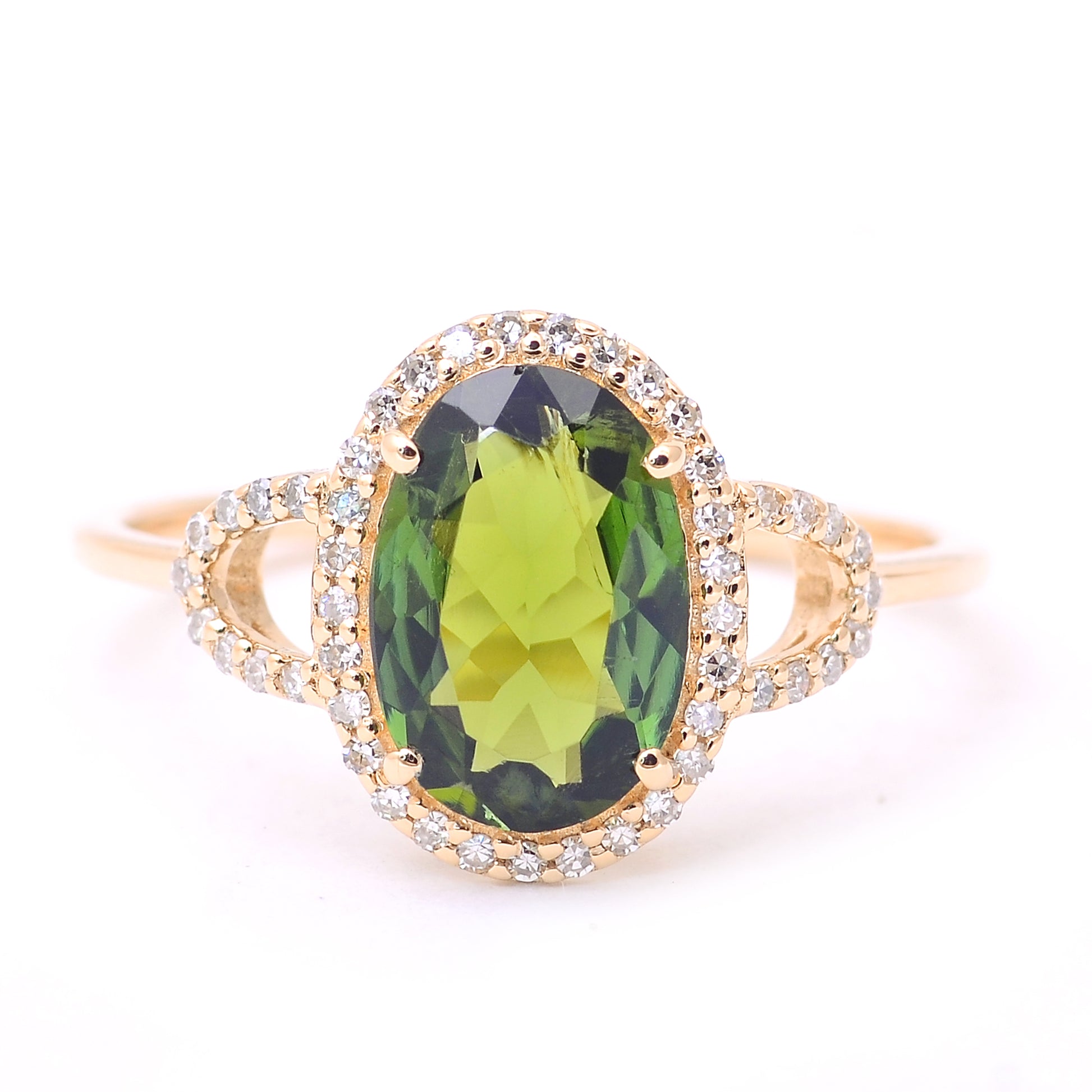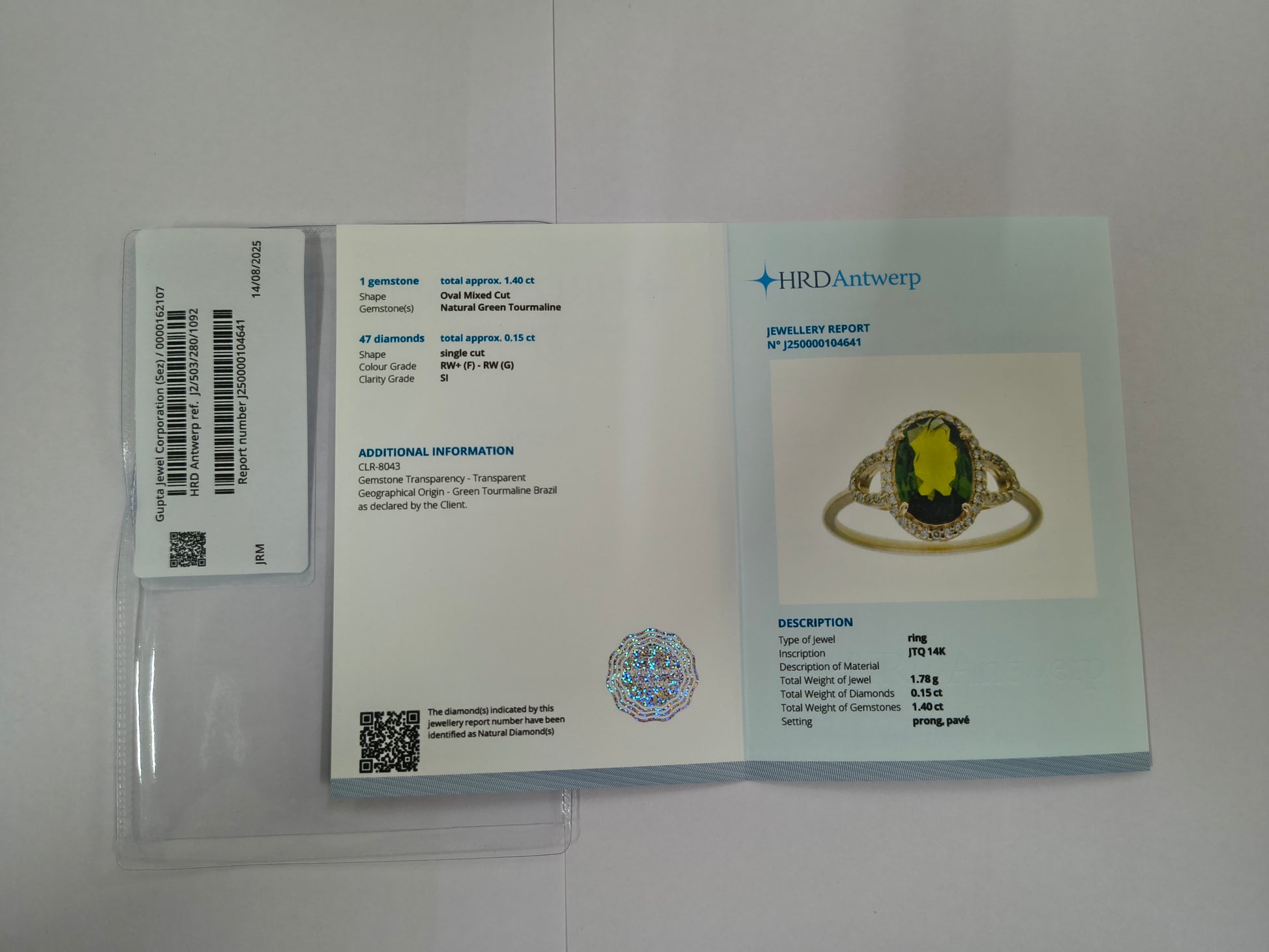 1.55 Ct Oval Mixed Cut Natural Tourmaline 14K Gold Ring