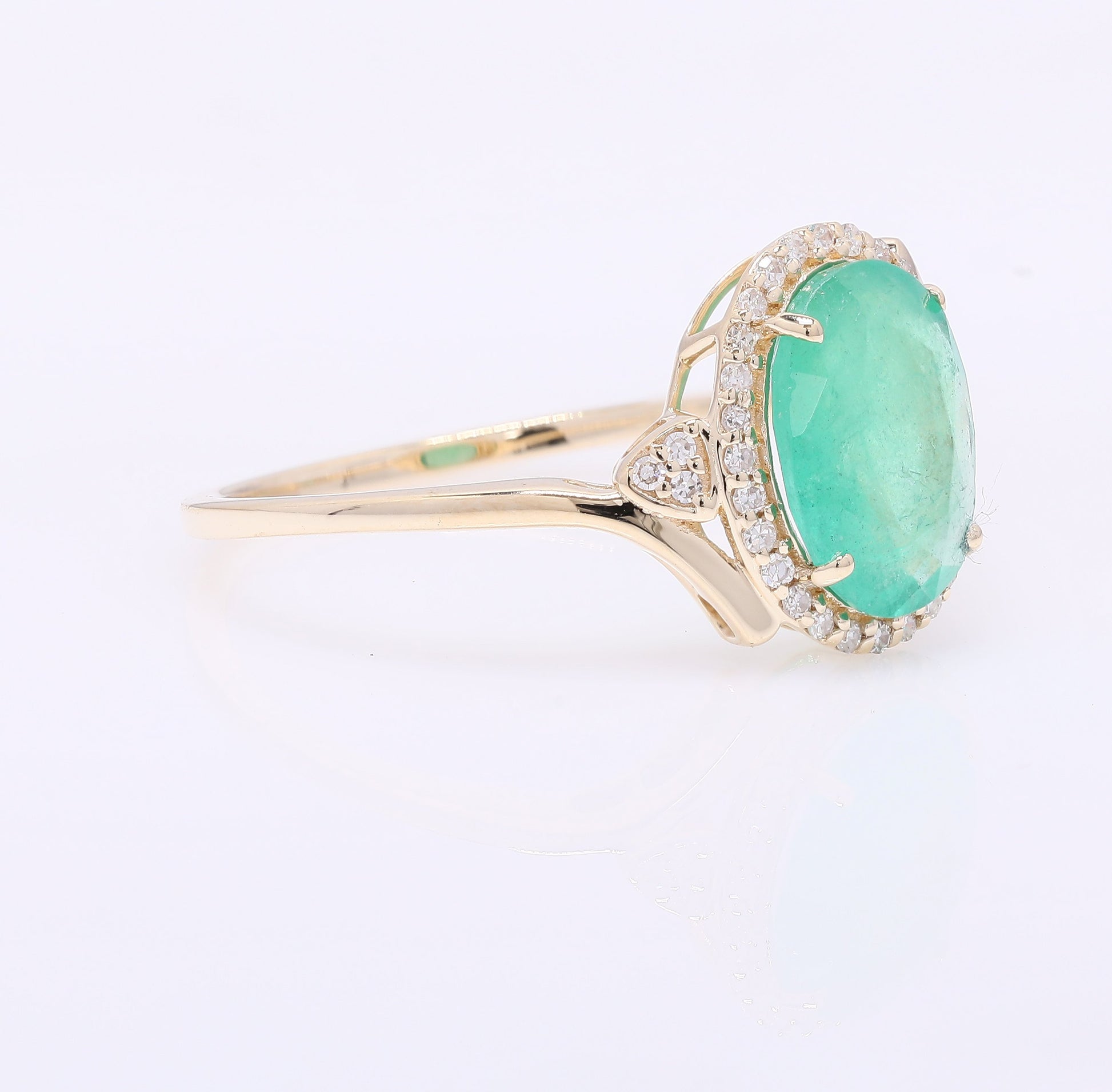 1.58 Ct Oval Mixed Cut Natural Emerald 14K Gold Ring
