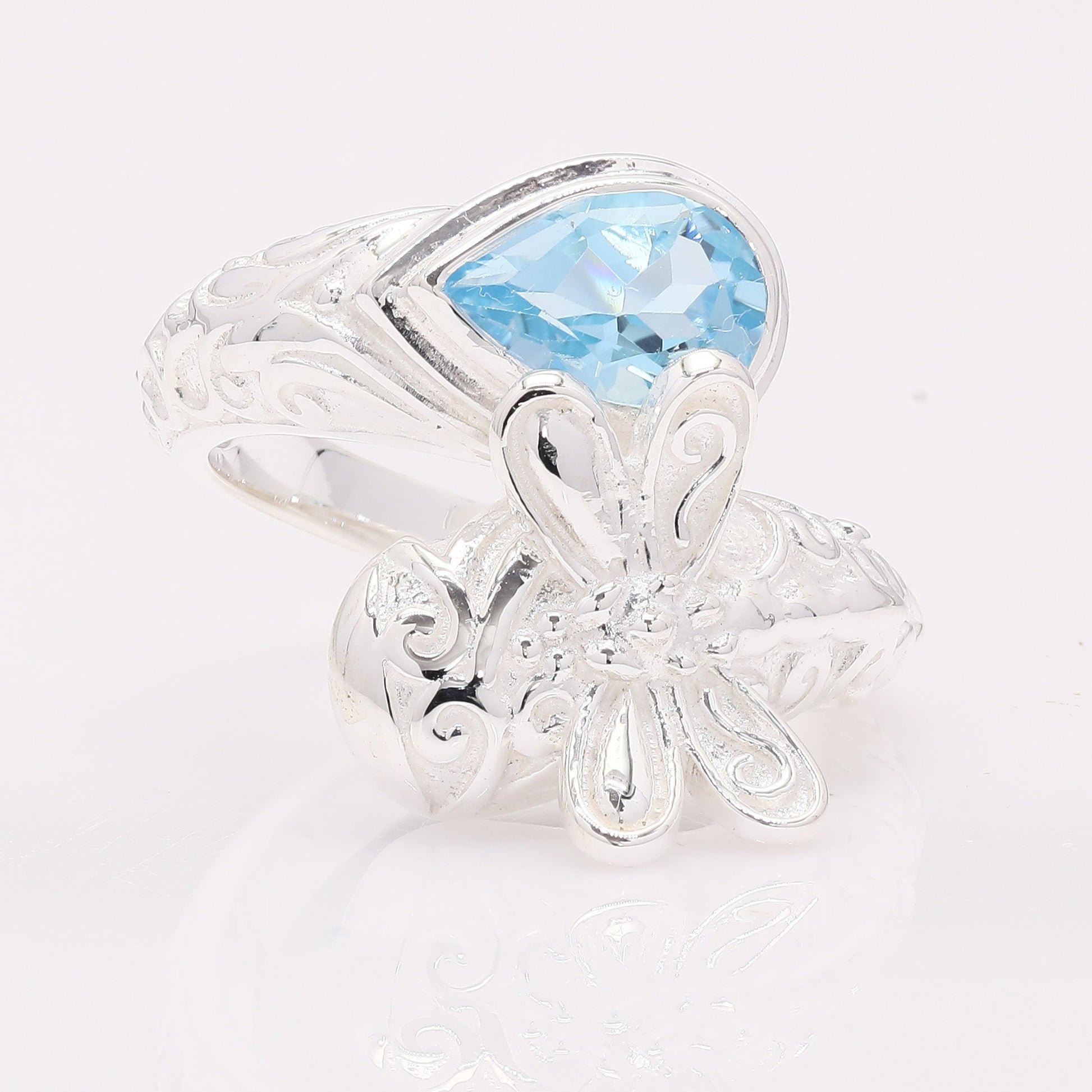 1.58 Ct Pear Blue Topaz 925 Silver Ring