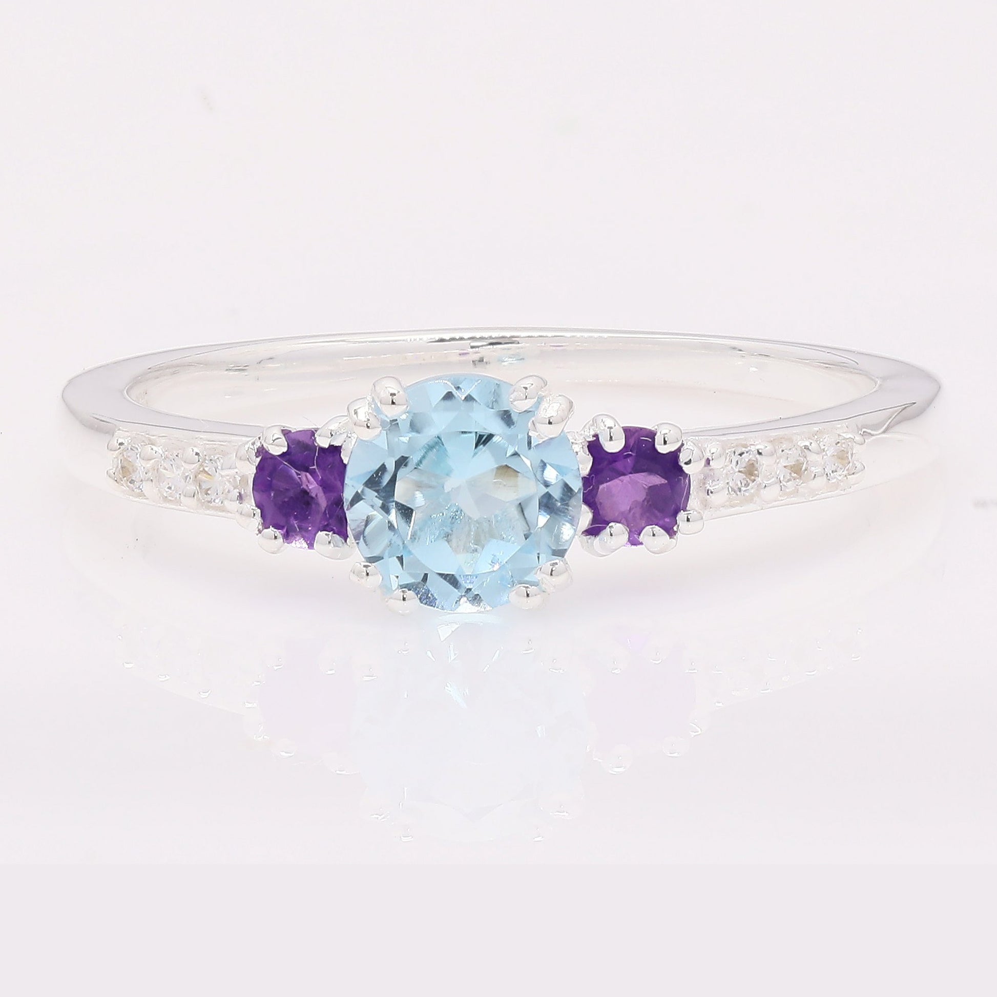 1.59 Ct Round Blue Topaz 925 Silver Ring