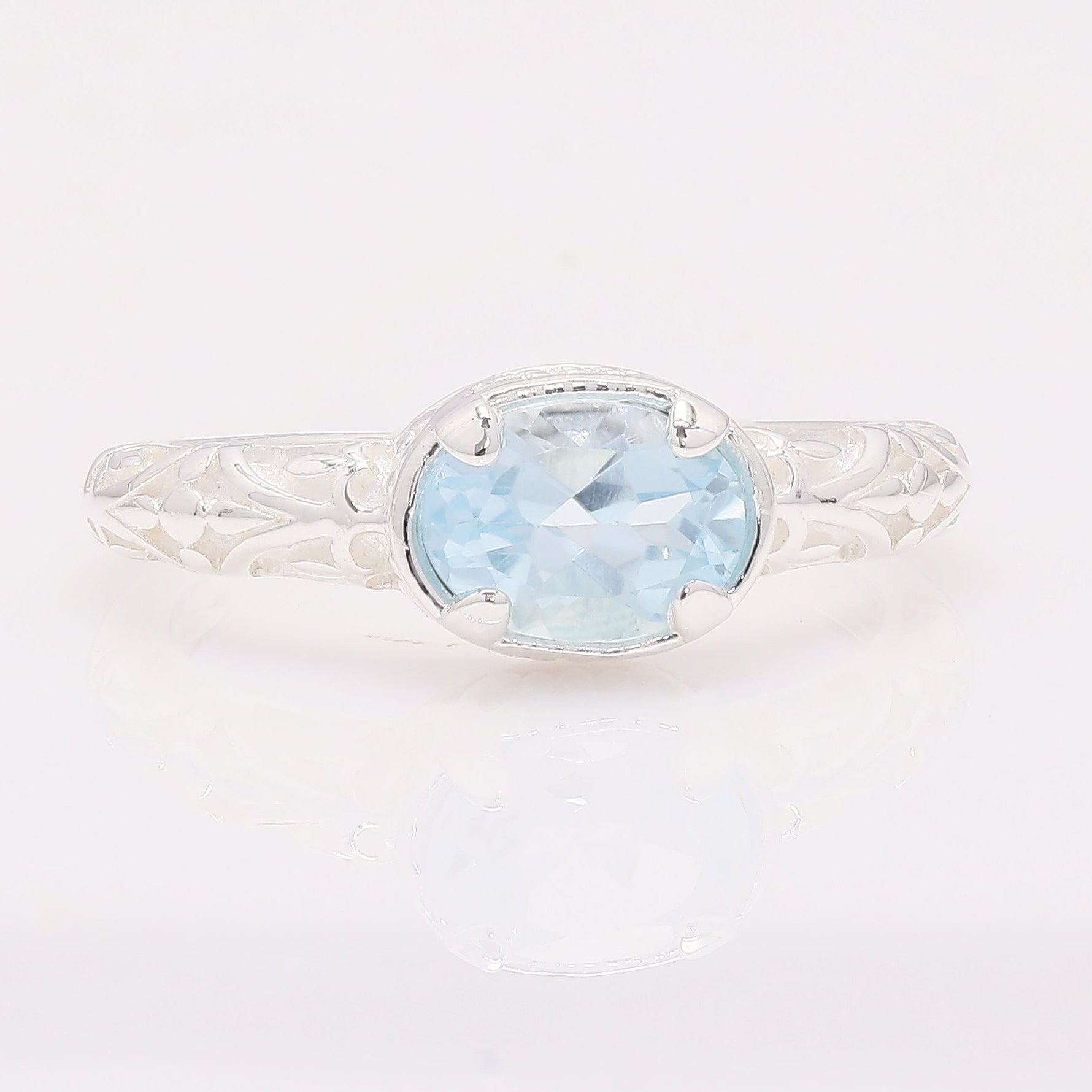 1.60 Ct Oval Blue Topaz 925 Silver Ring