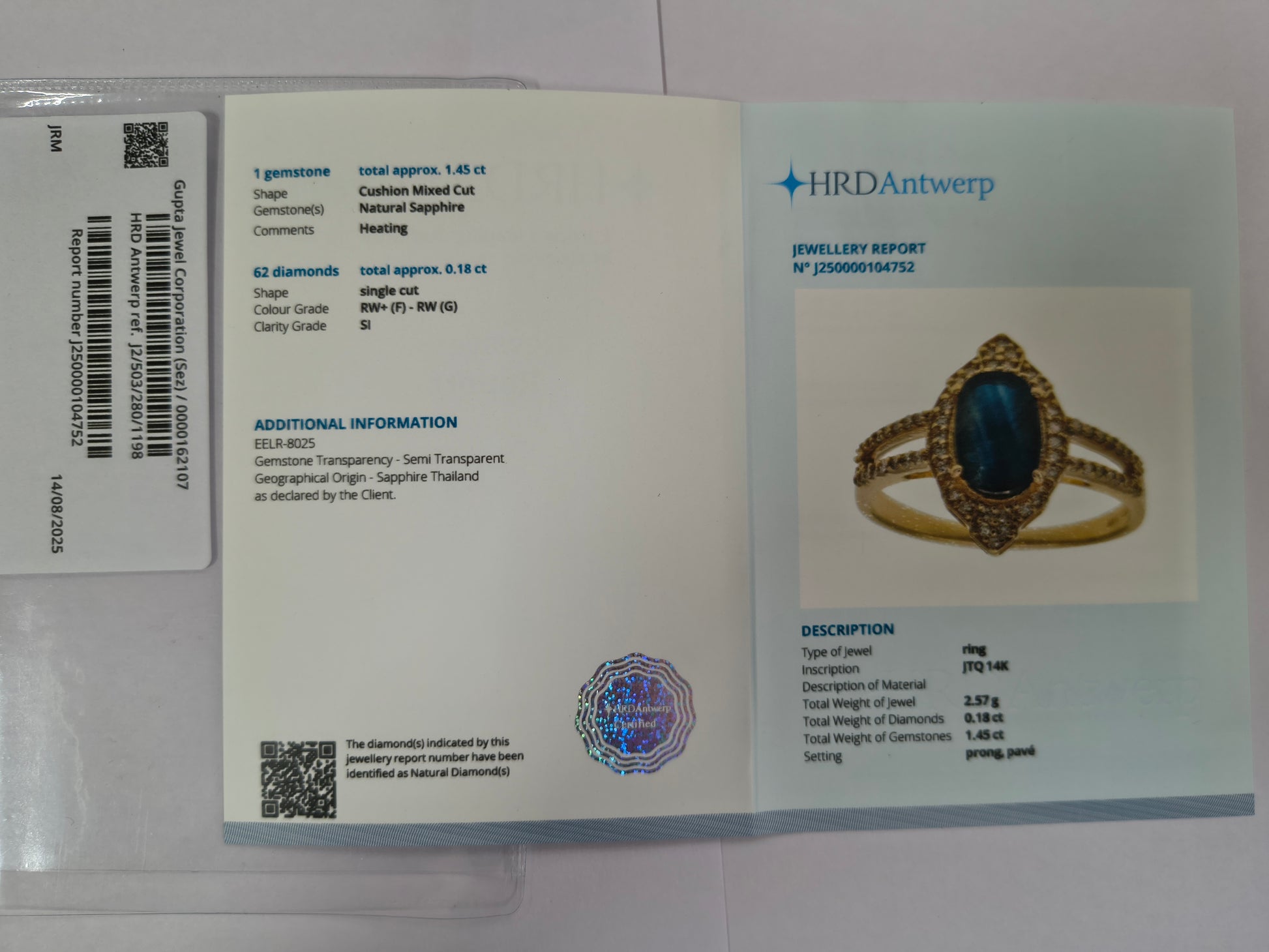1.63 Ct Cushion Mixed Cut Natural Sapphire 14K Gold Ring