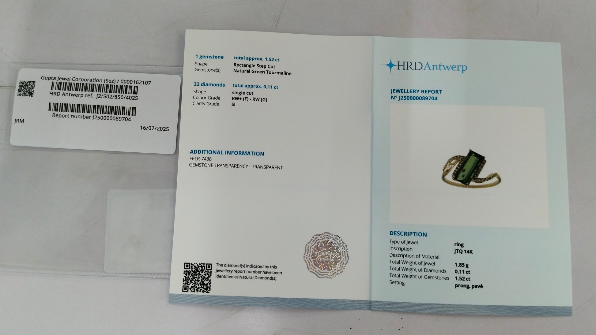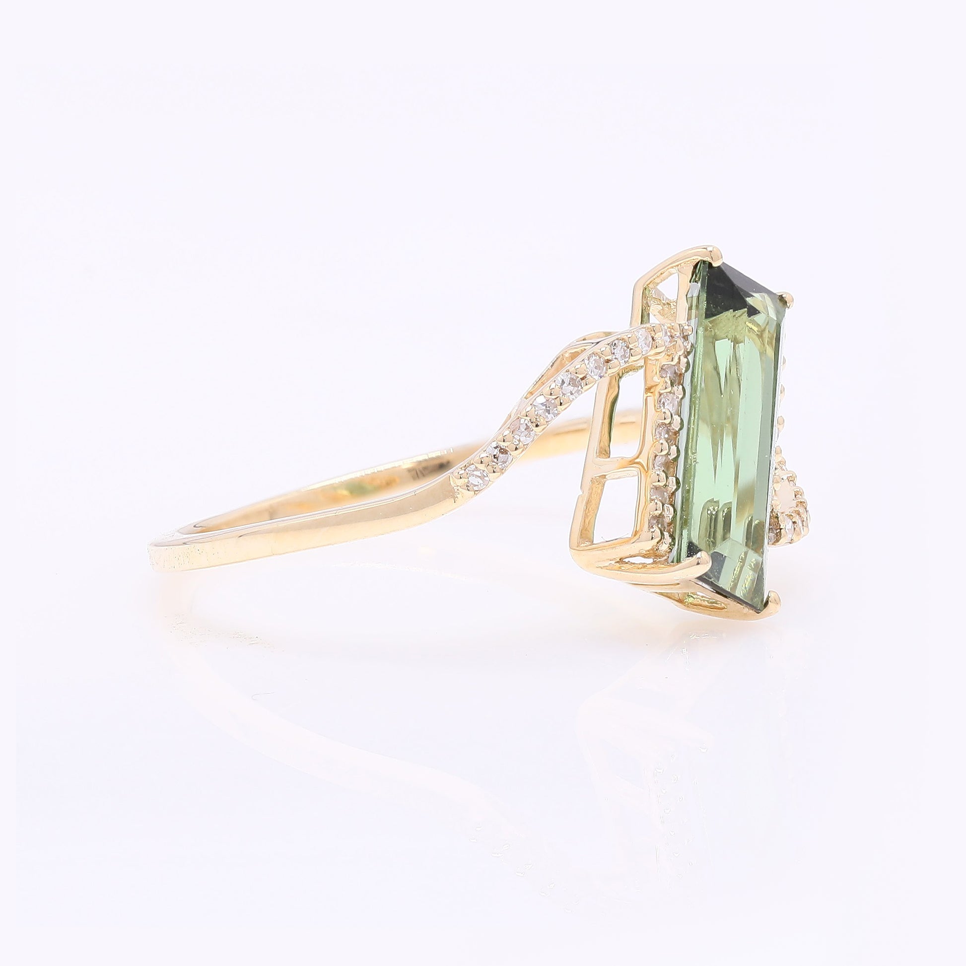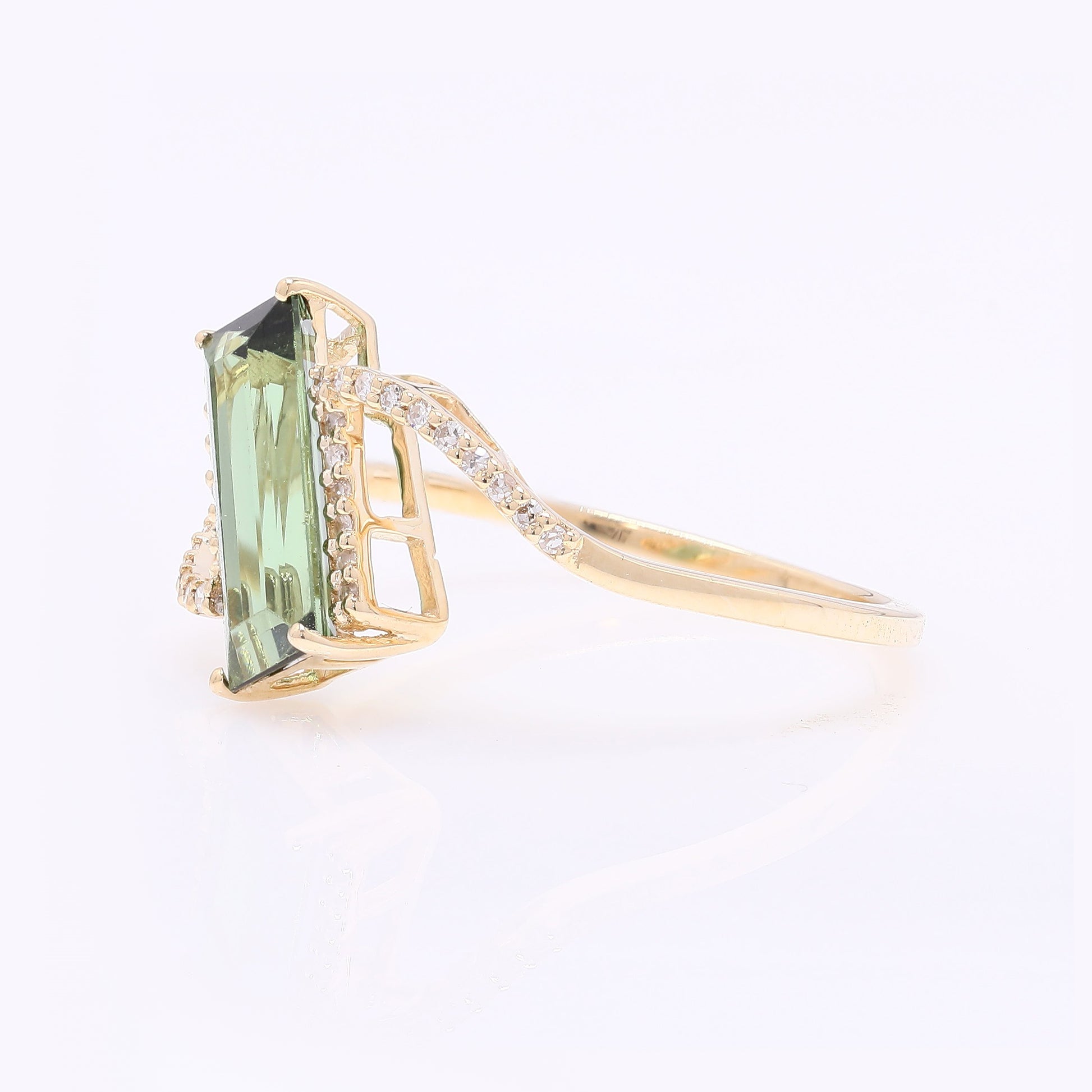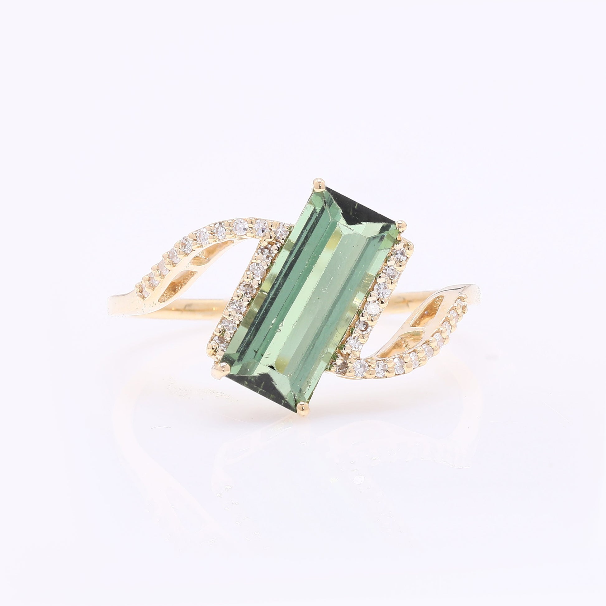 1.63 Ct Rectangle Step Cut Natural Green Tourmaline 14K Gold Ring