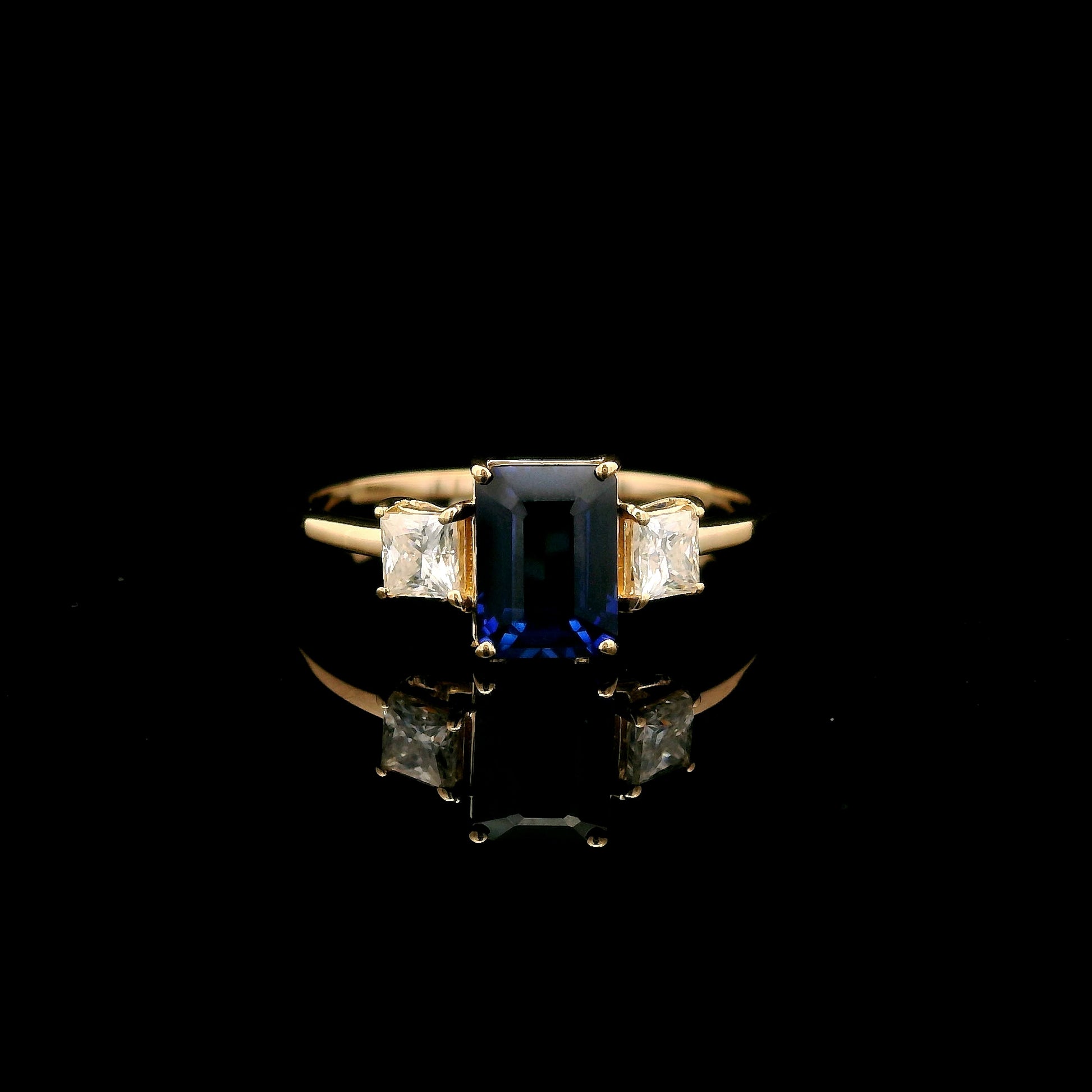 1.67 Ct Emerald Cut Lab Grown Sapphire 14K Gold Ring