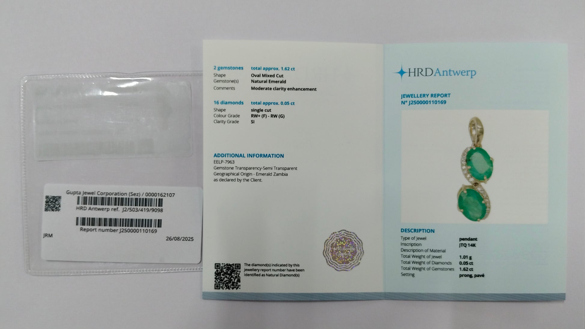 1.67 Ct Oval Mixed Cut Natural Emerald 14K Gold Pendant