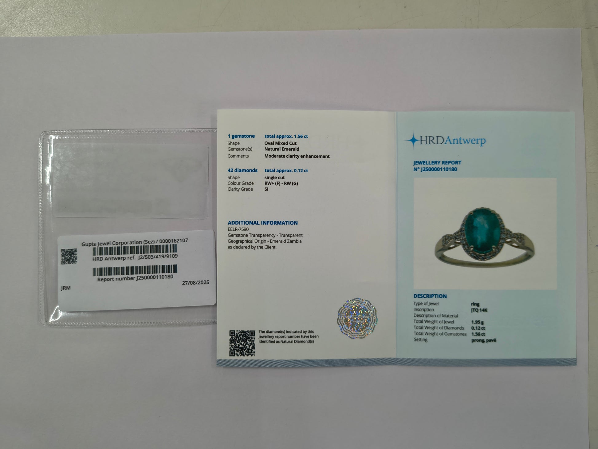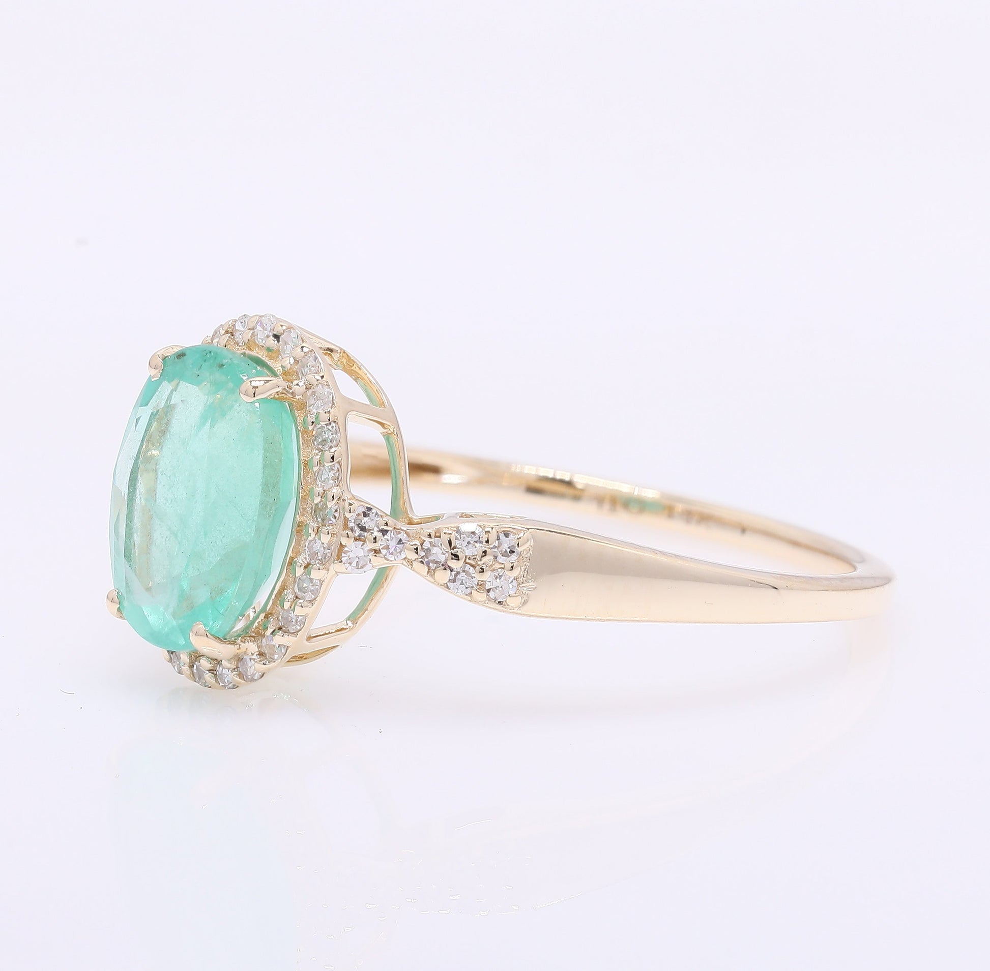 1.68 Ct Oval Mixed Cut Natural Emerald 14K Gold Ring