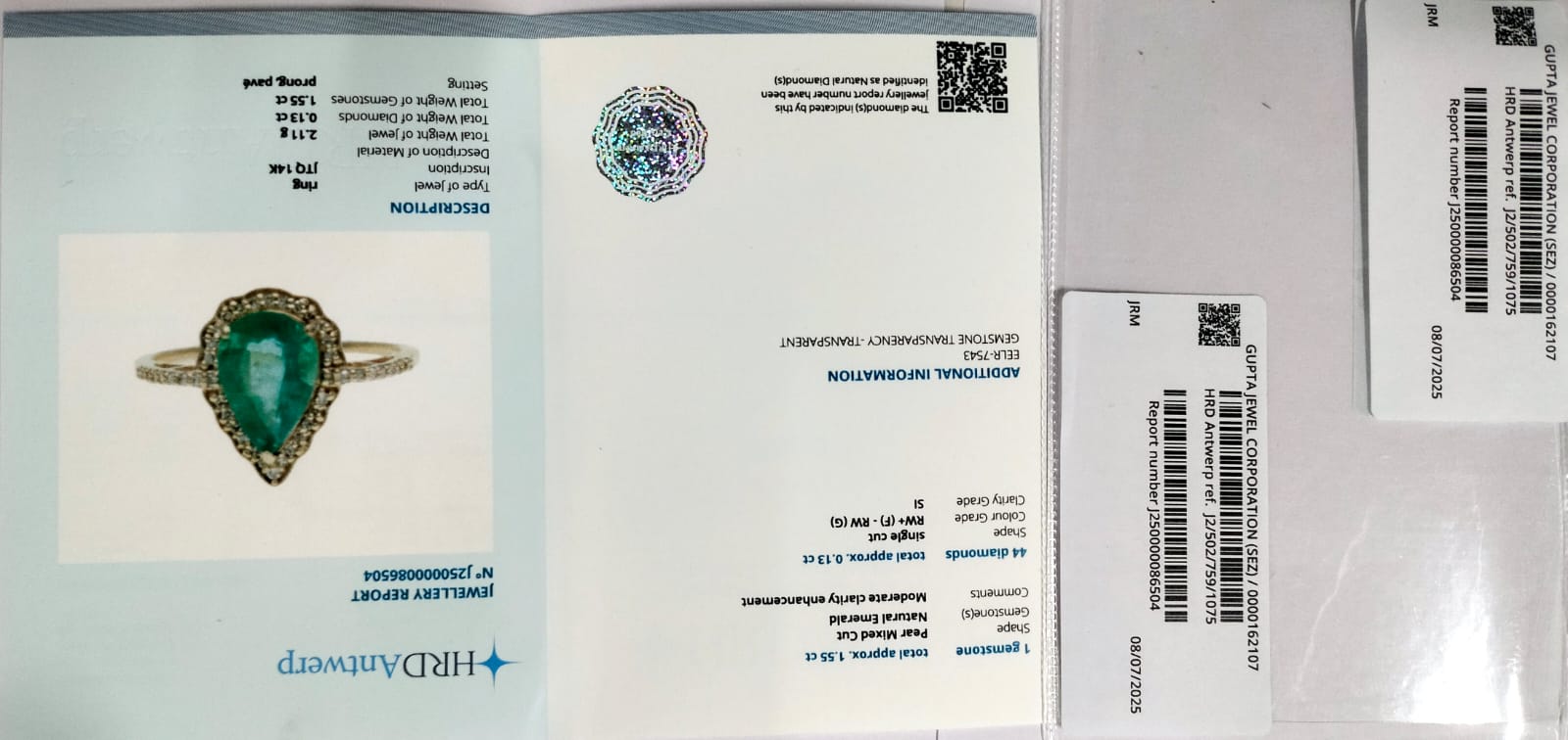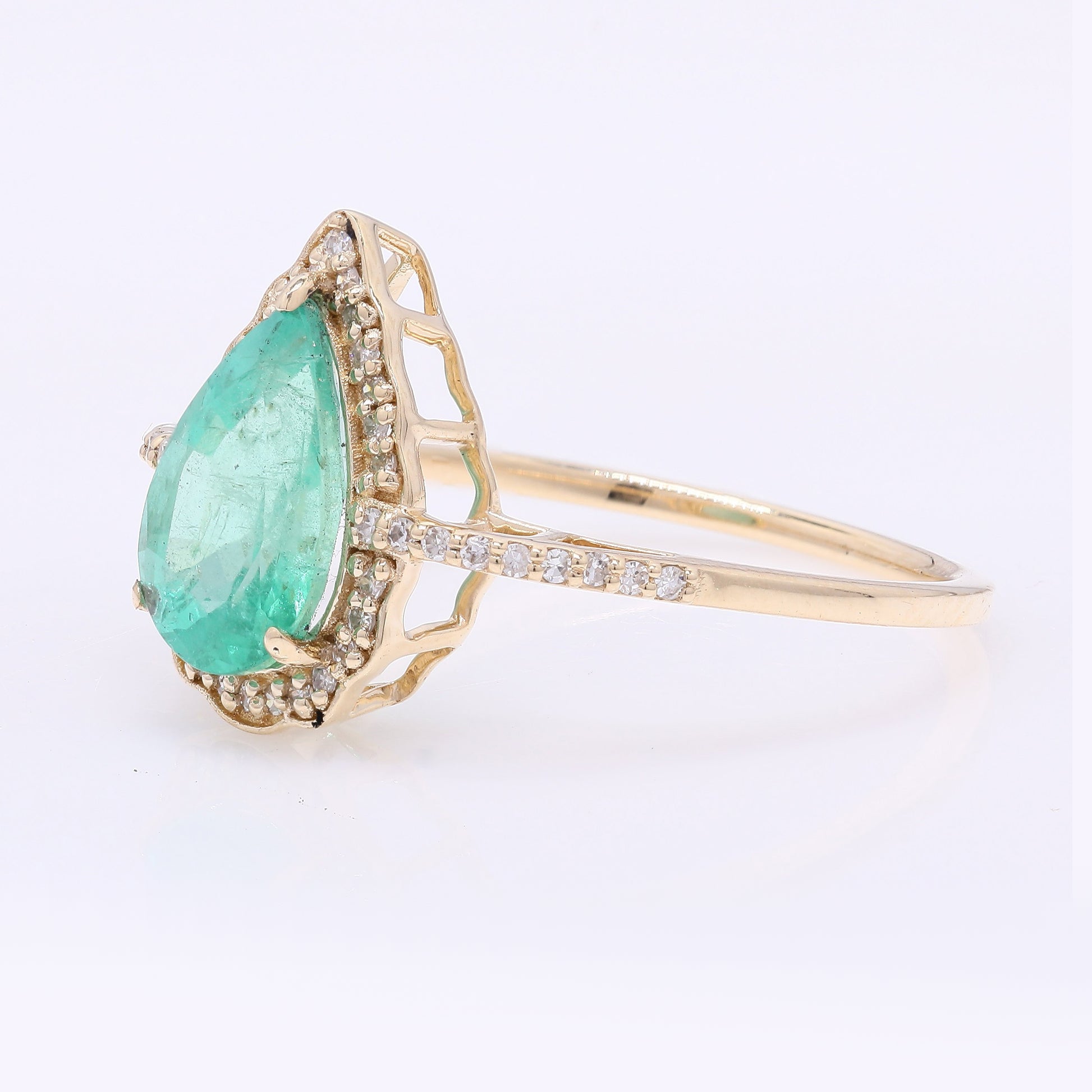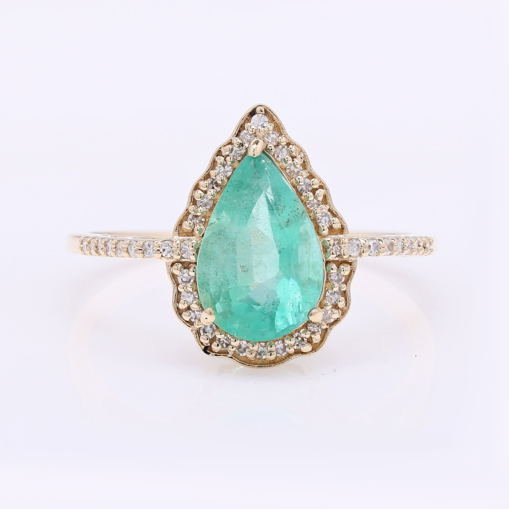 1.68 Ct Pear Mixed Cut Natural Emerald 14K Gold Ring