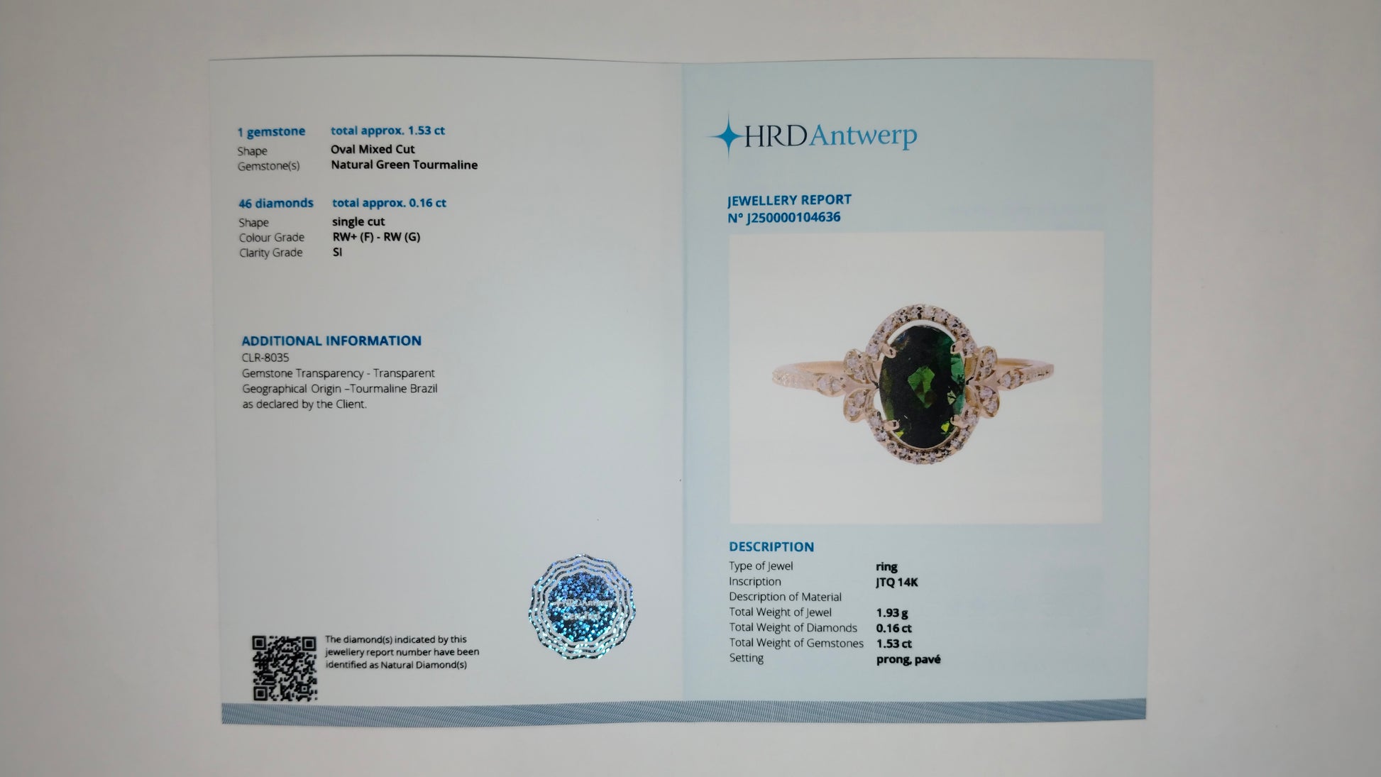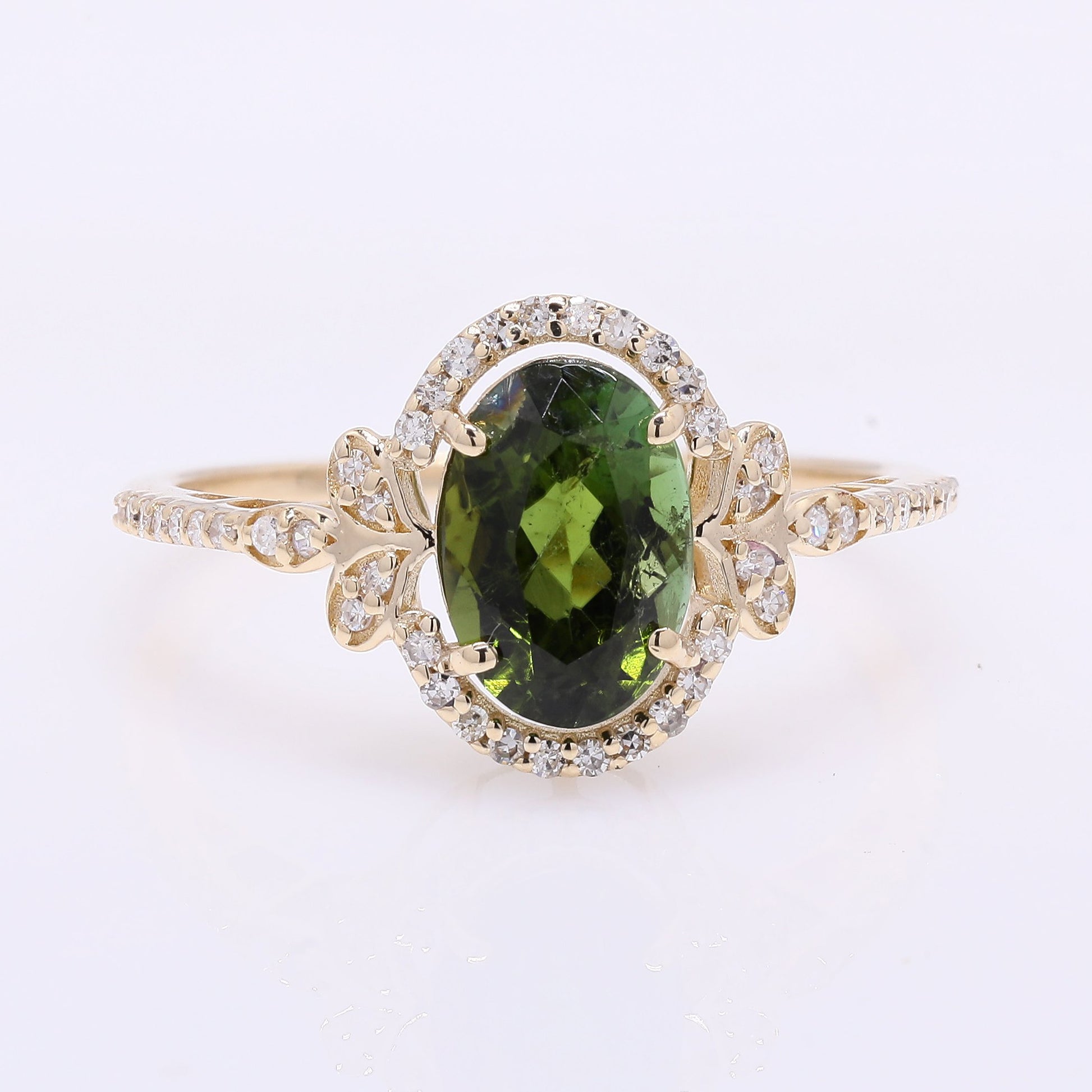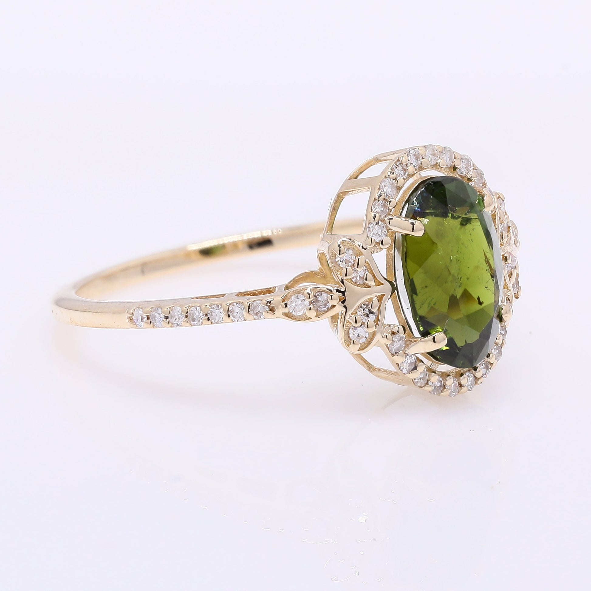1.69 Ct Oval Mixed Cut Natural Tourmaline 14K Gold Ring