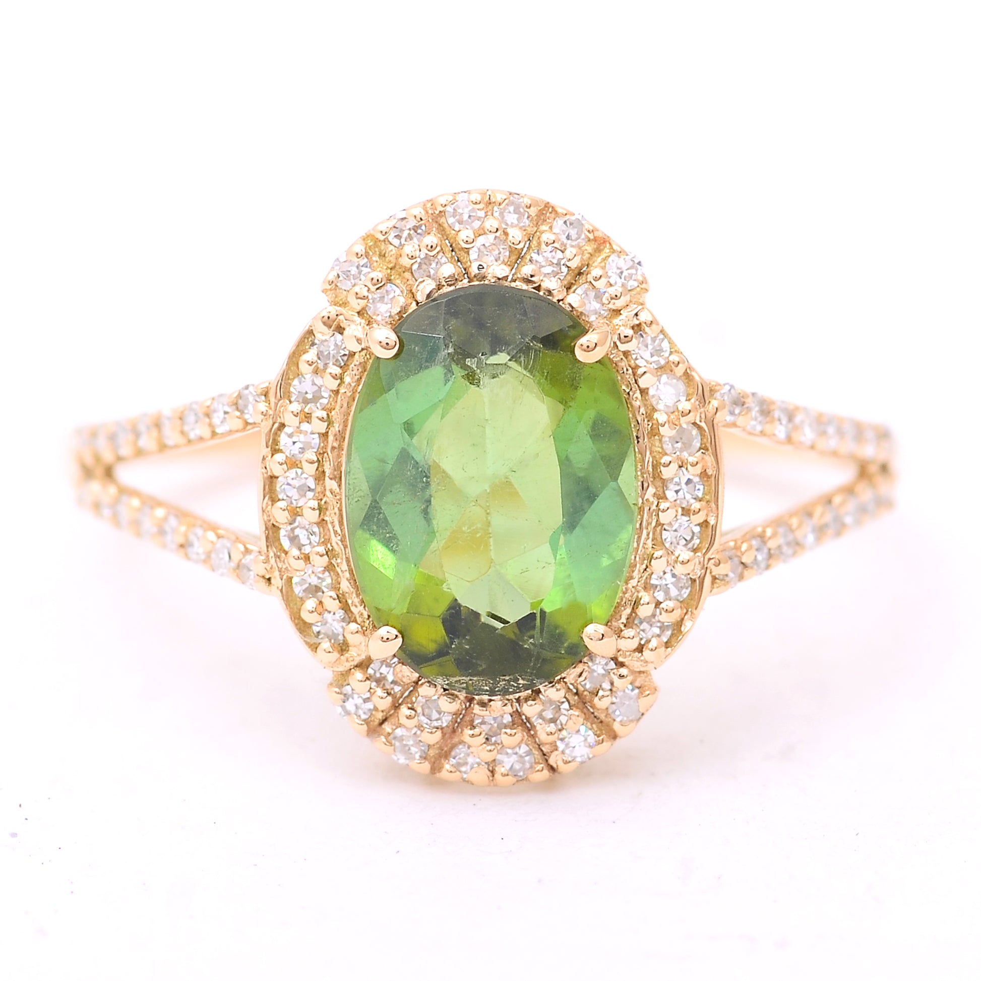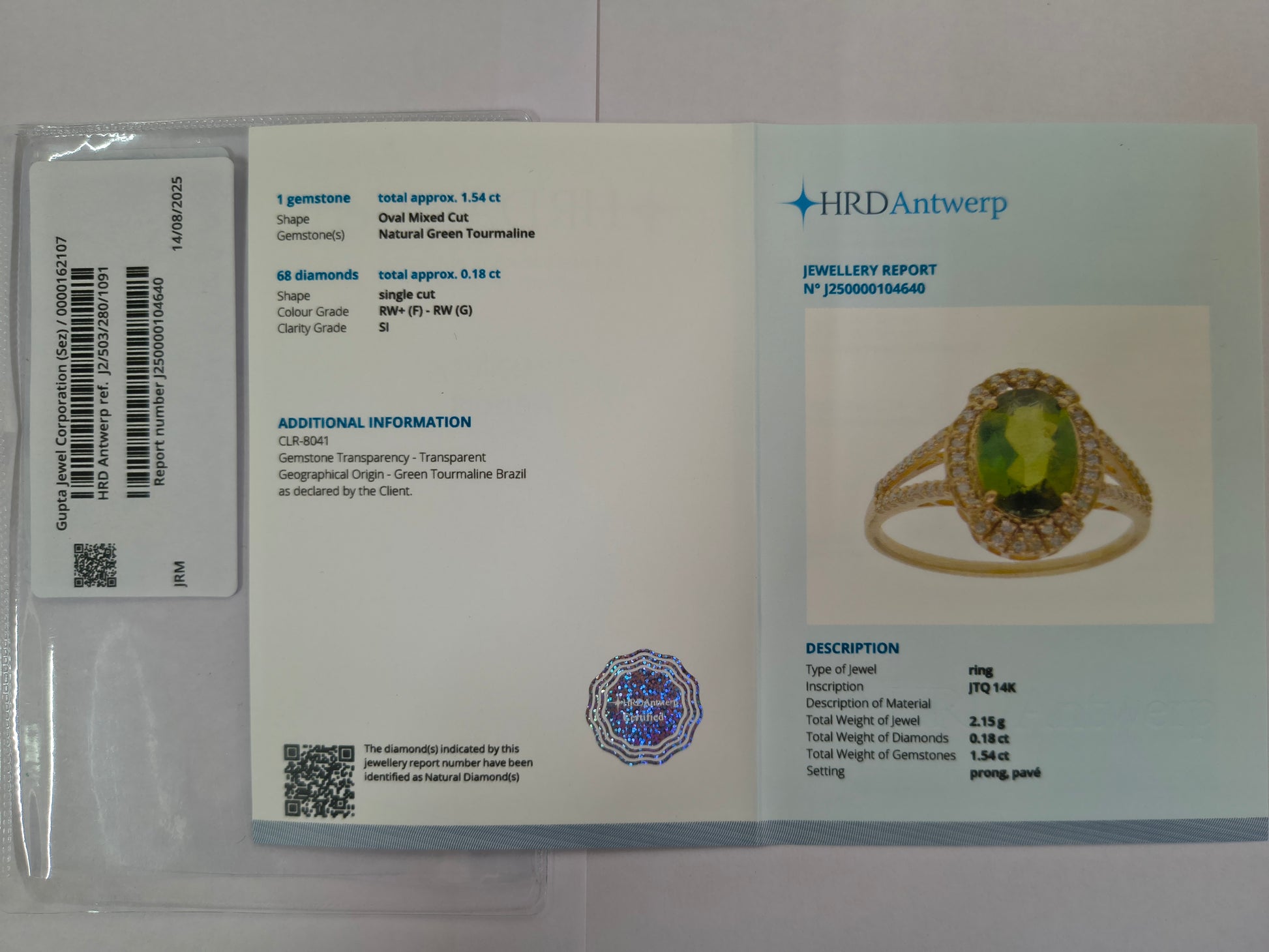 1.72 Ct Oval Mixed Cut Natural Tourmaline 14K Gold Ring