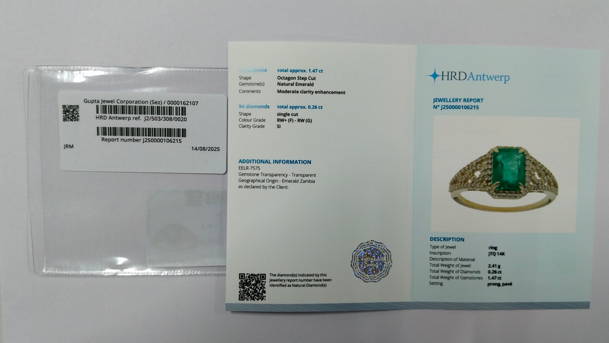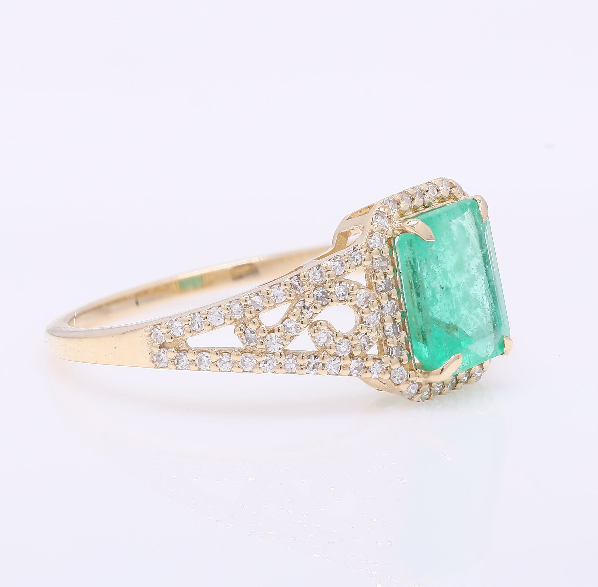 1.73 Ct Octagon Step Cut Natural Emerald 14K Gold Ring