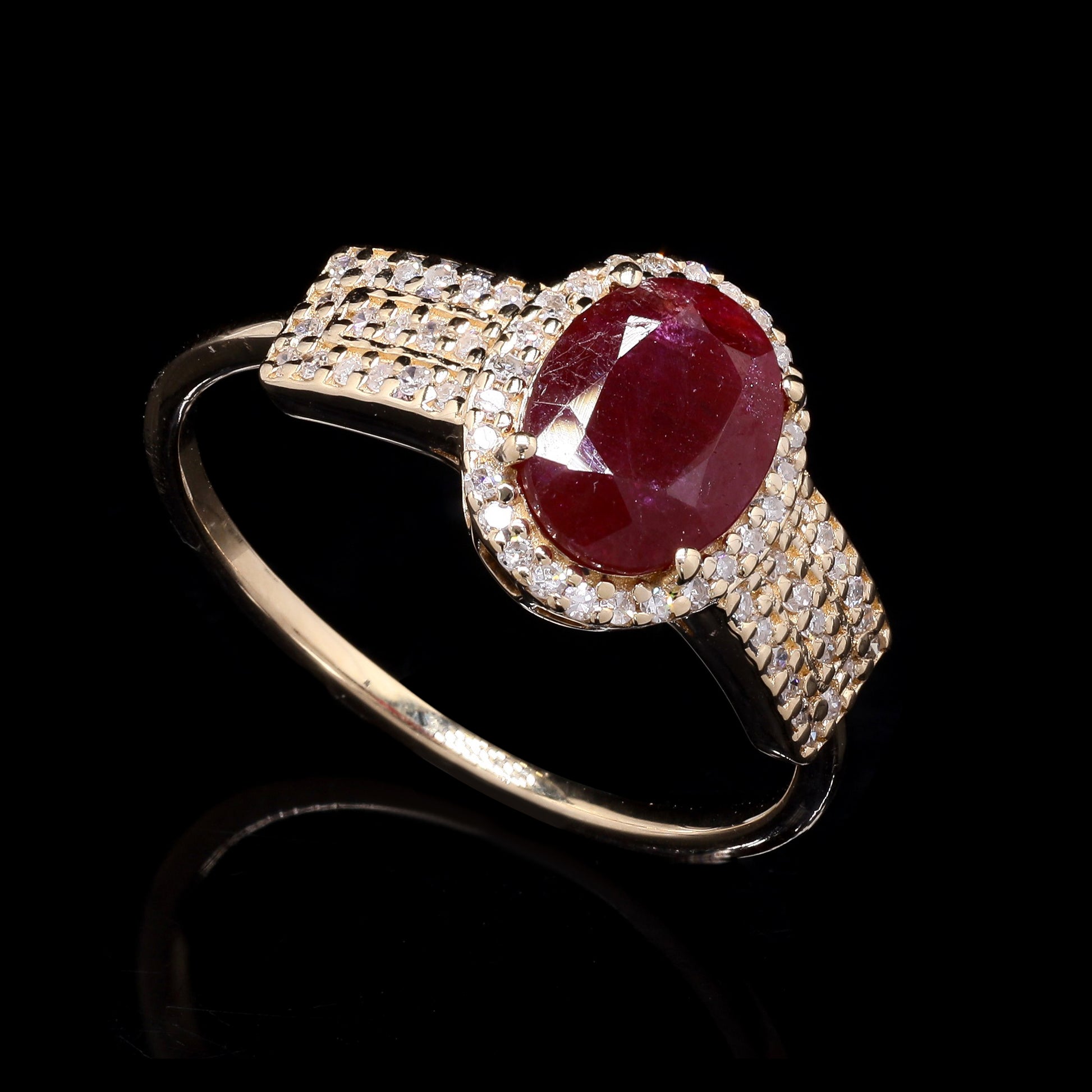 1.73 Ct Oval Mixed Cut Natural Ruby 14K Gold Ring