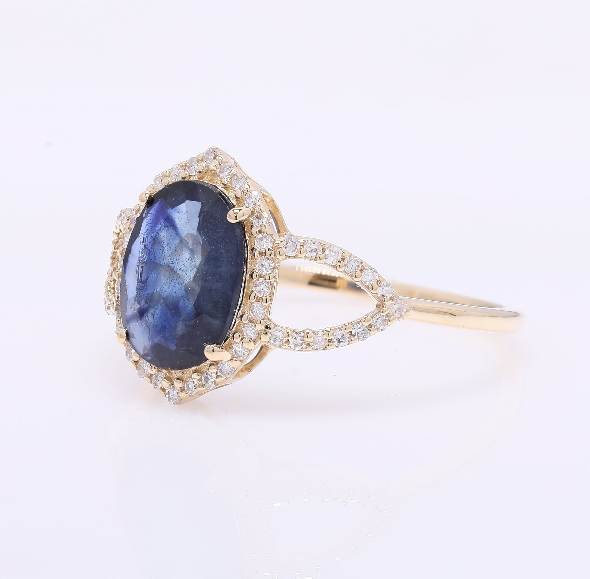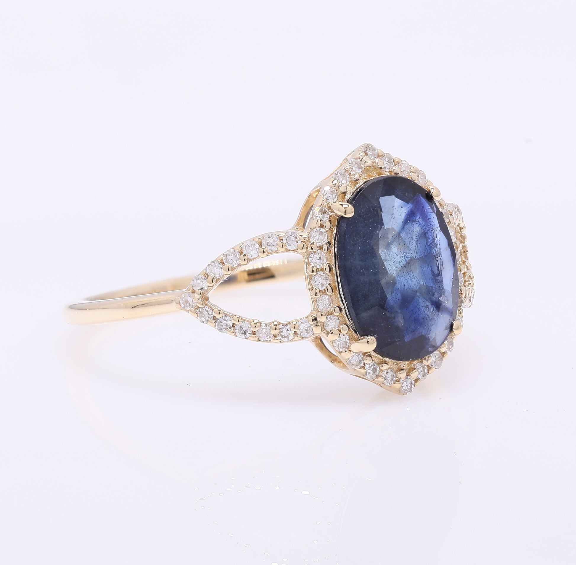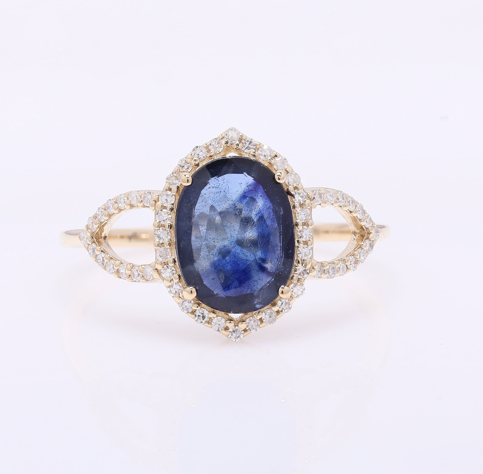 1.73 Ct Oval Mixed Cut Natural Sapphire 14K Gold Ring