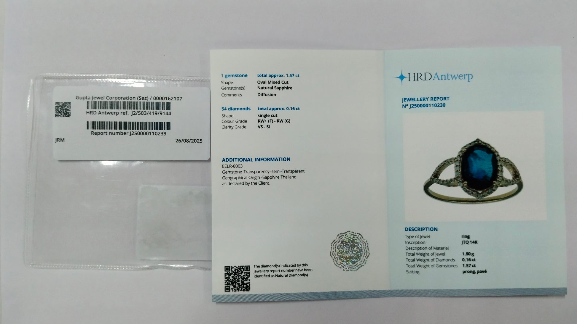 - Certificate Number J250000110239
