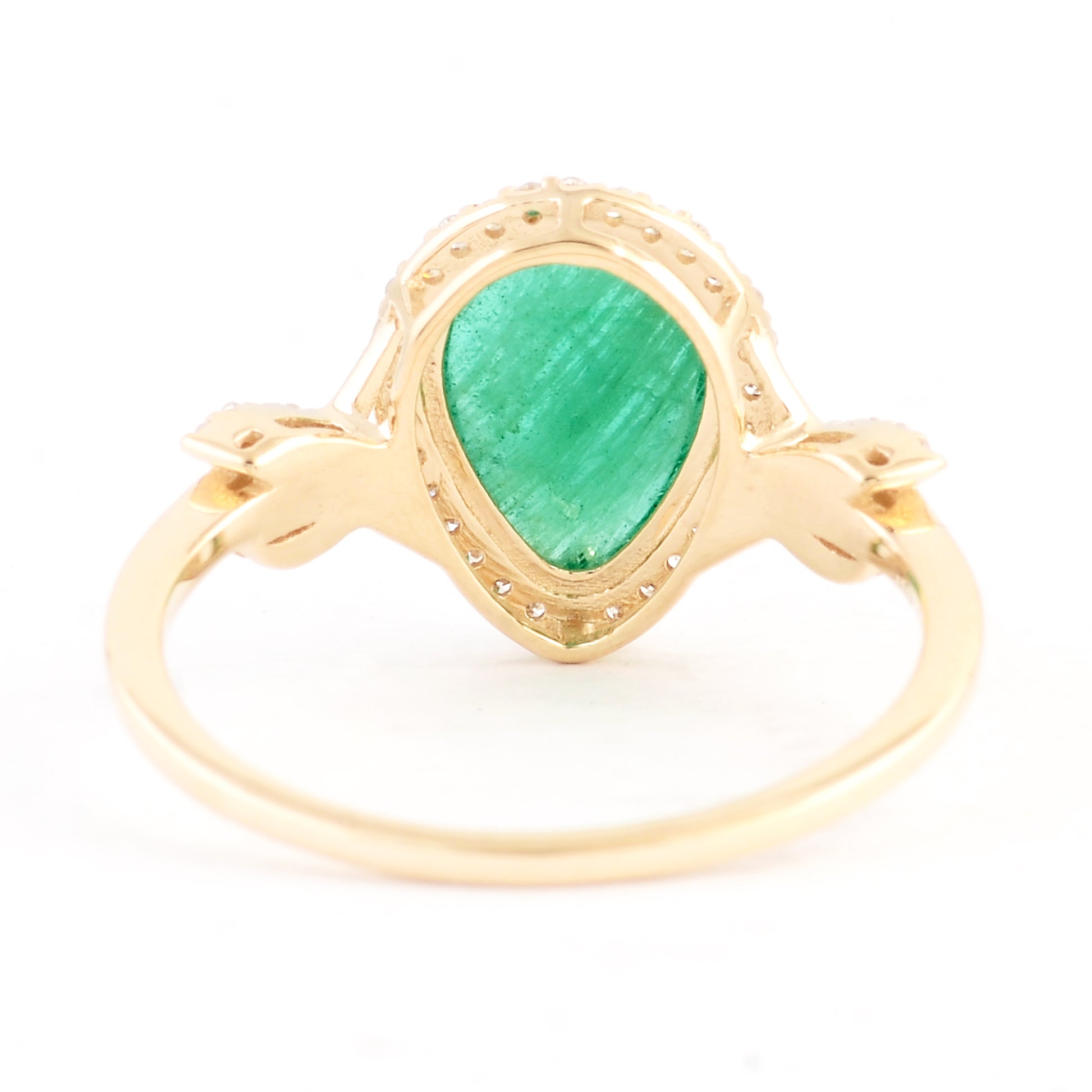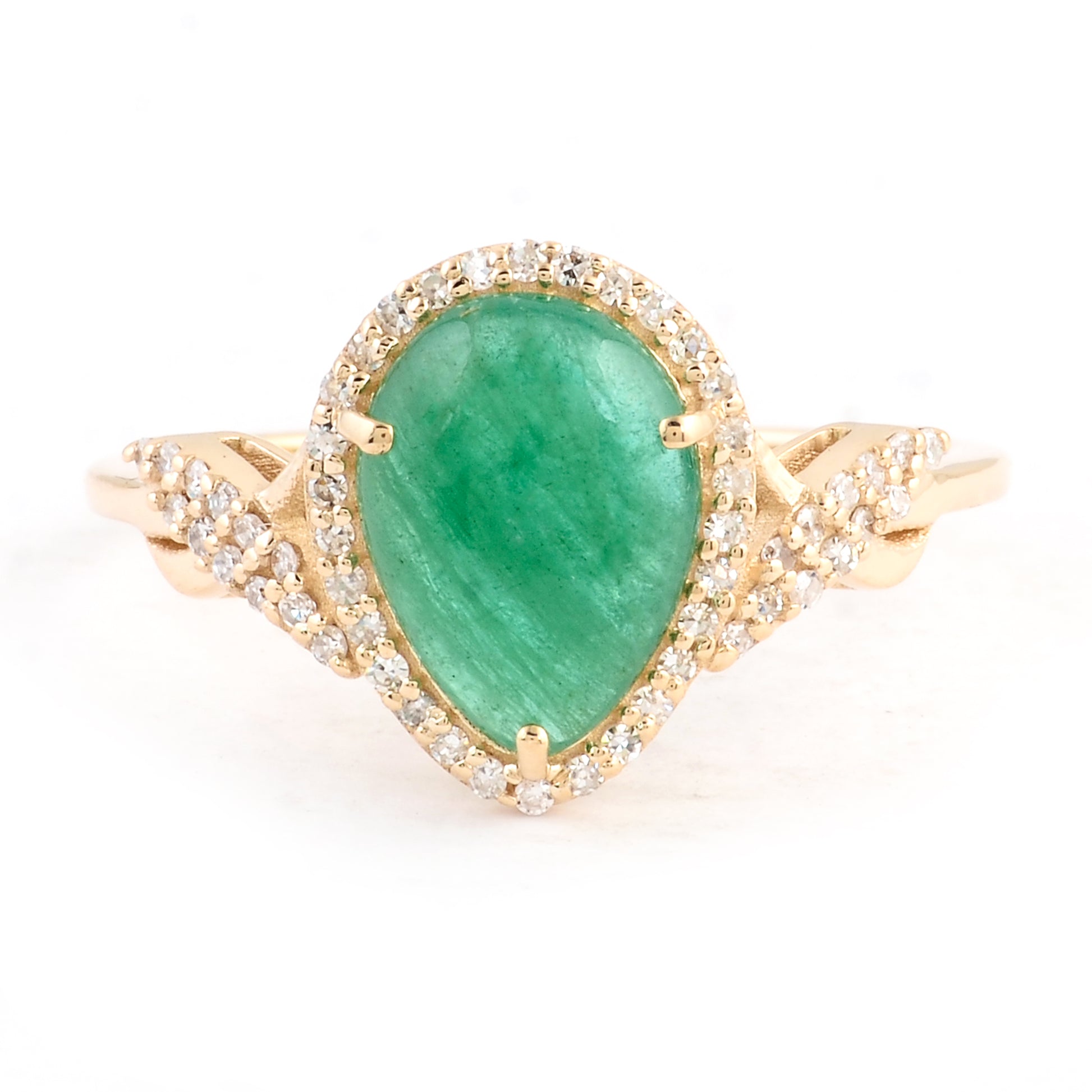 1.73 Ct Pear Cabochon Natural Beryl Emerald 14K Gold Ring