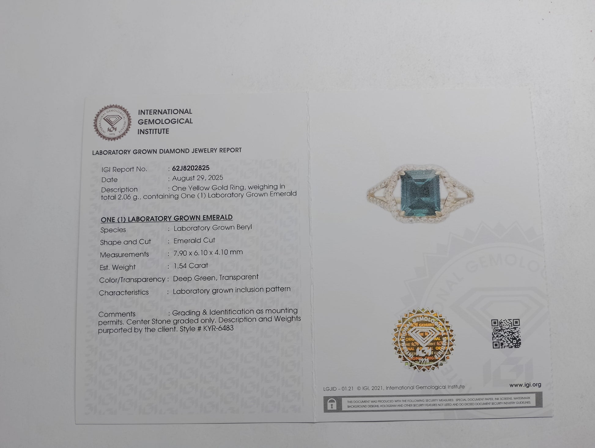 - Lab Name: International Gemological Institute (IGI)