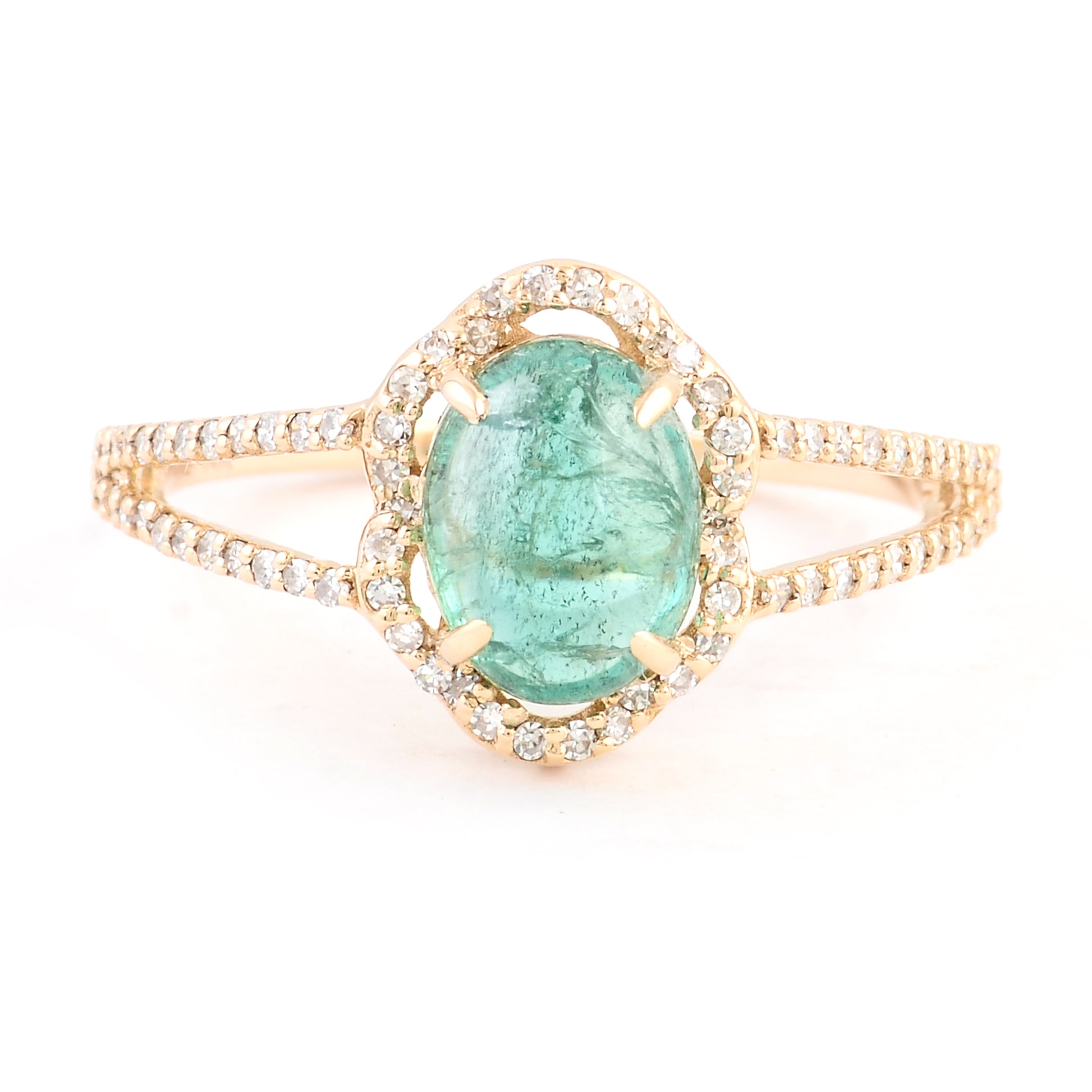 1.75 Ct Oval Cabochon Natural Beryl Emerald 14K Gold Ring