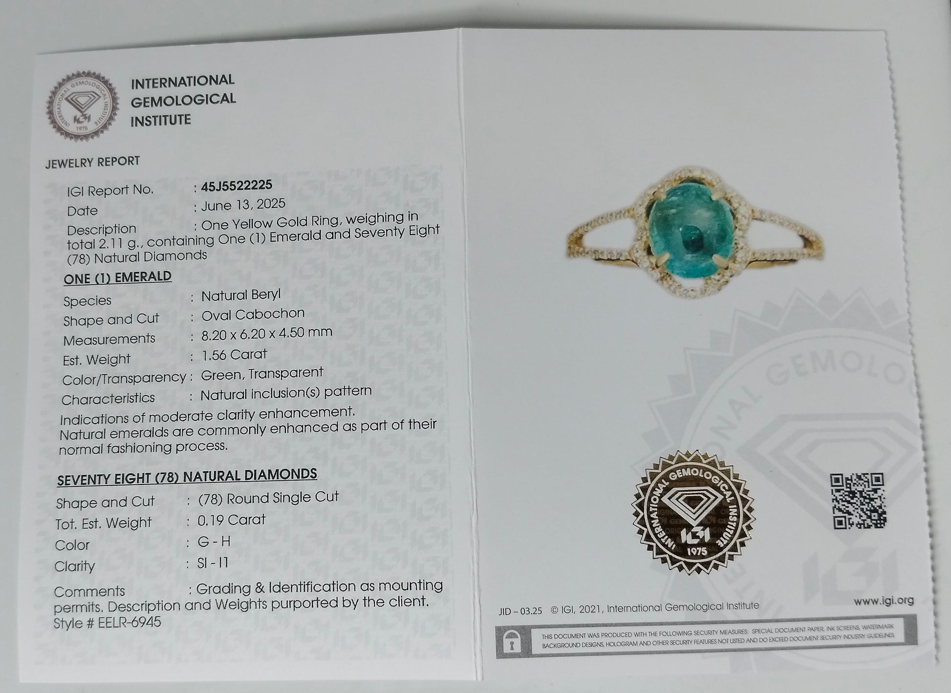 - Lab Name: International Gemological Institute (IGI)