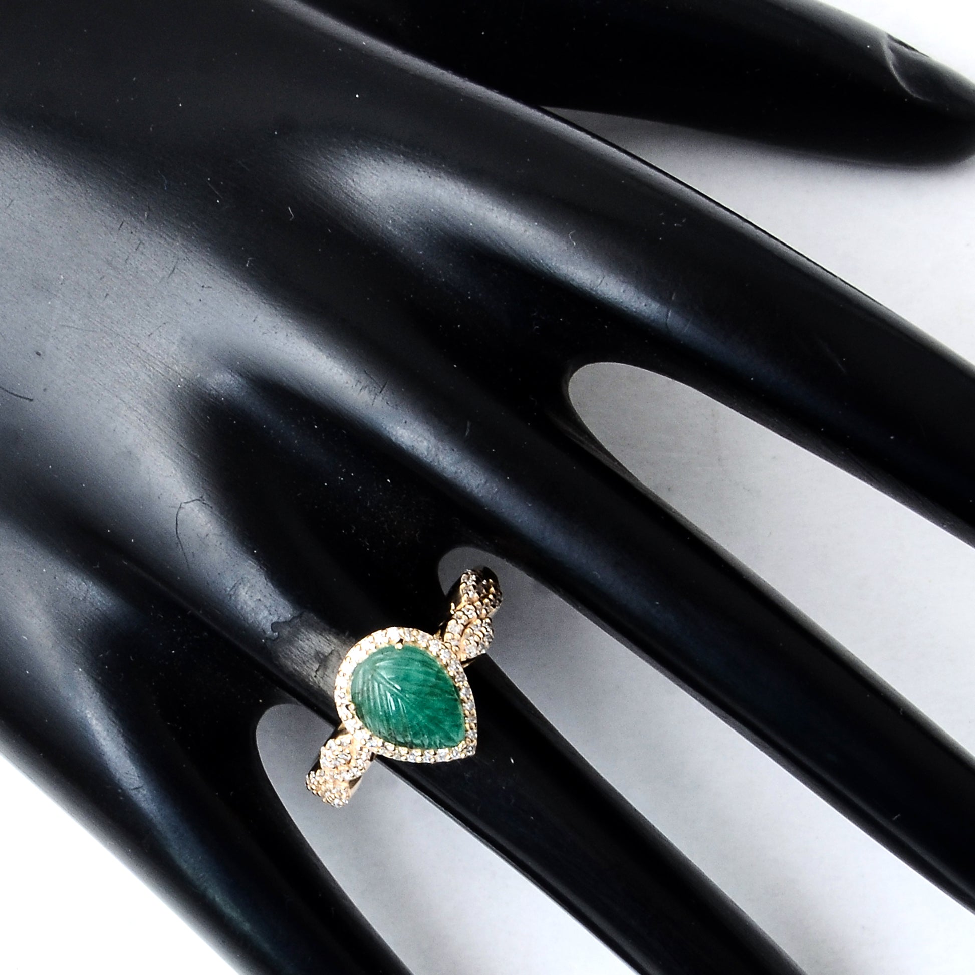 1.76 Ct Pear Carving Natural Beryl Emerald 14K Gold Ring