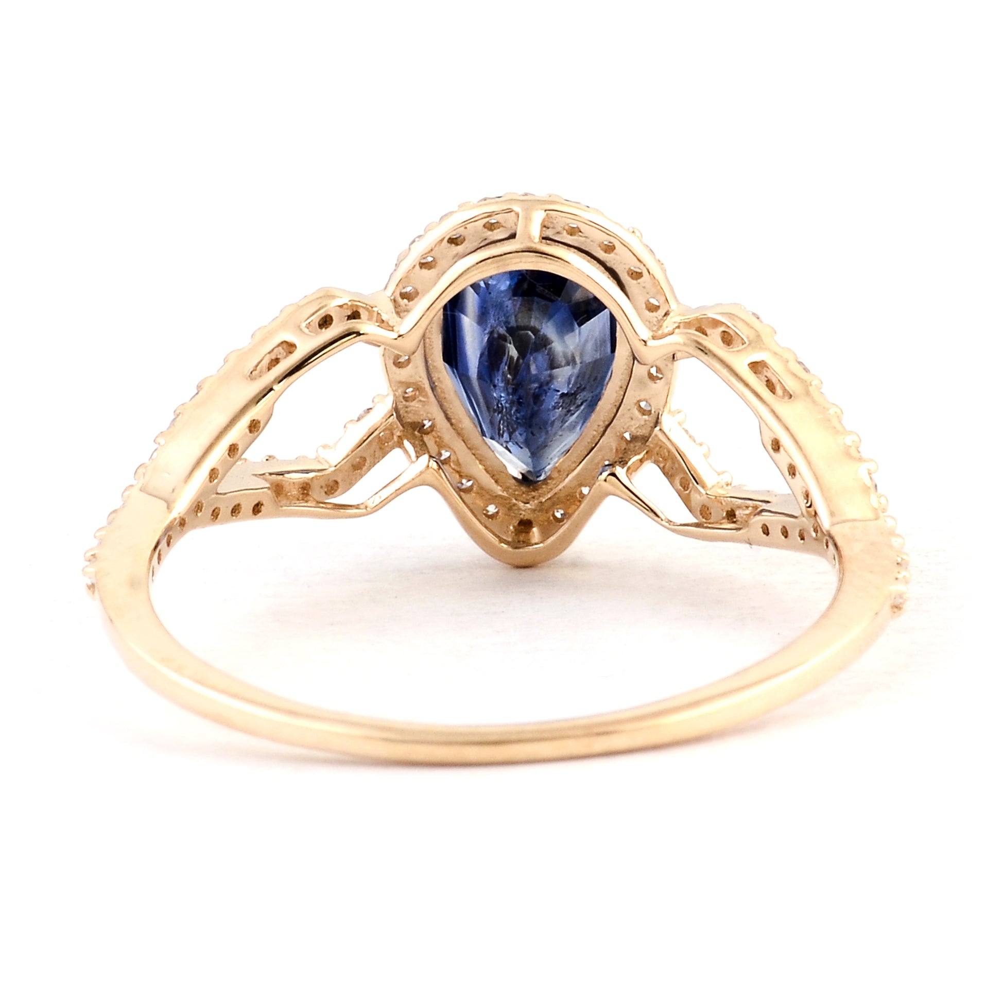 1.76 Ct Pear Mixed Cut Natural Codundum Sapphire 14K Gold Ring