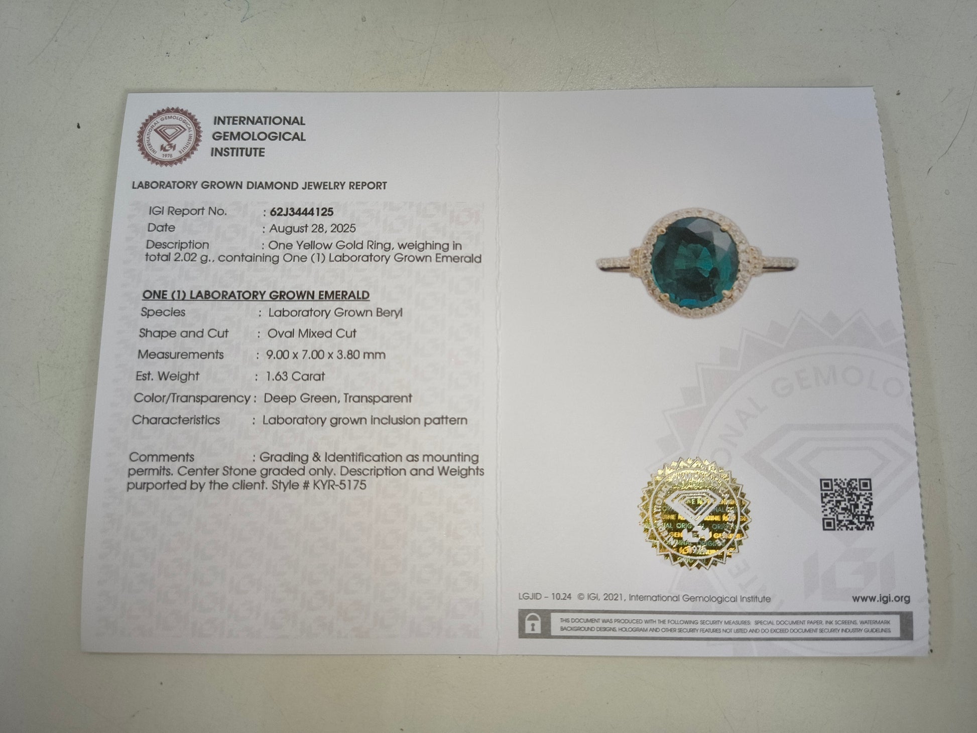 - Lab Name: International Gemological Institute (IGI)