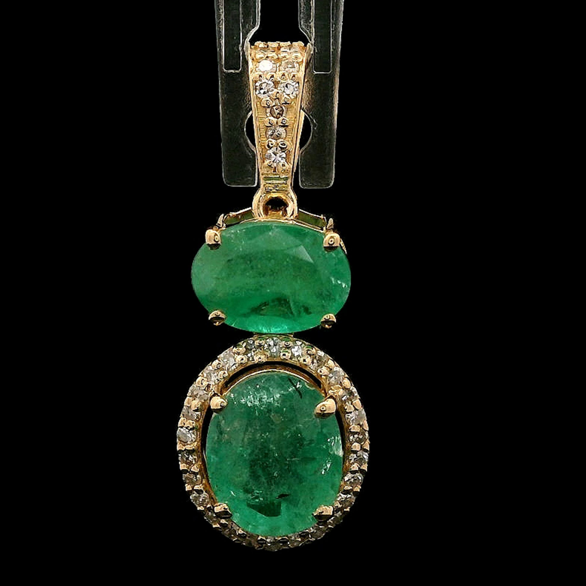 1.79 Ct Oval Mixed Cut Natural Emerald 14K Gold Pendant