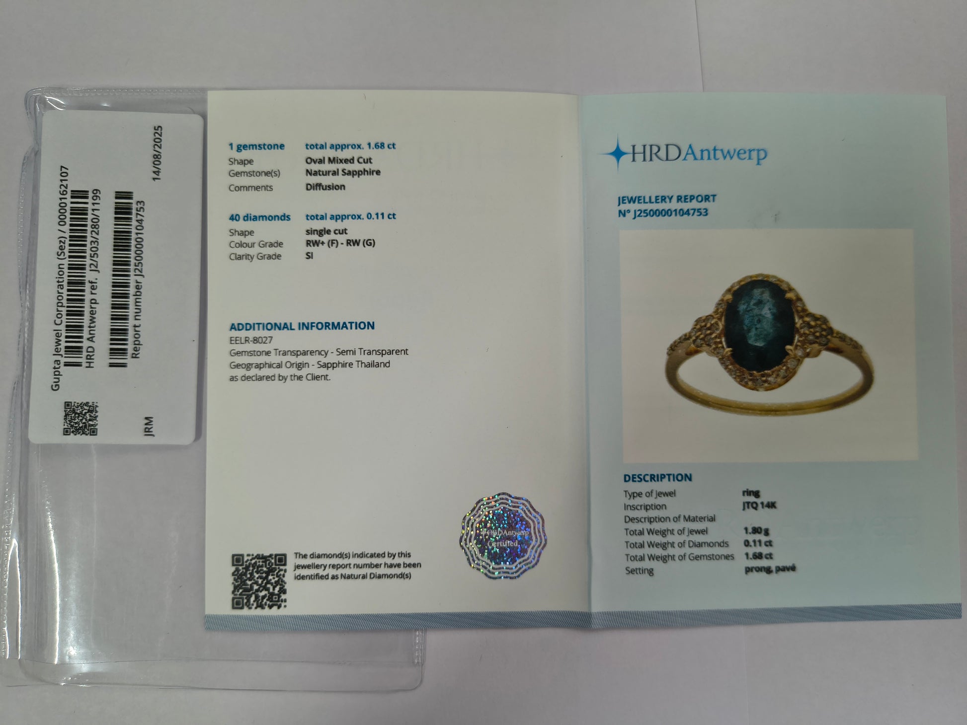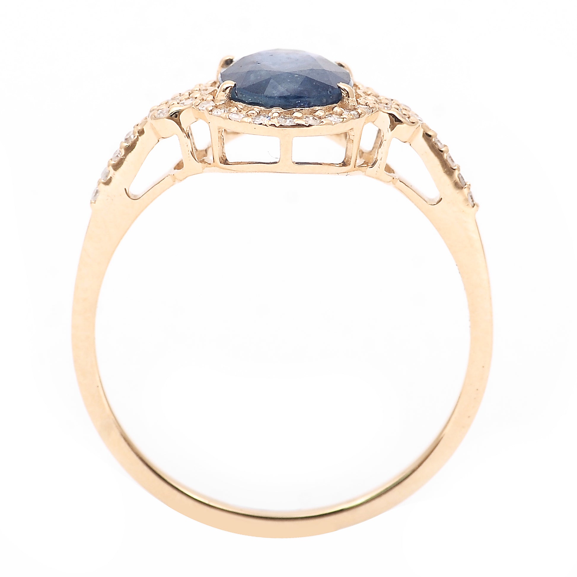 1.79 Ct Oval Mixed Cut Natural Sapphire 14K Gold Ring