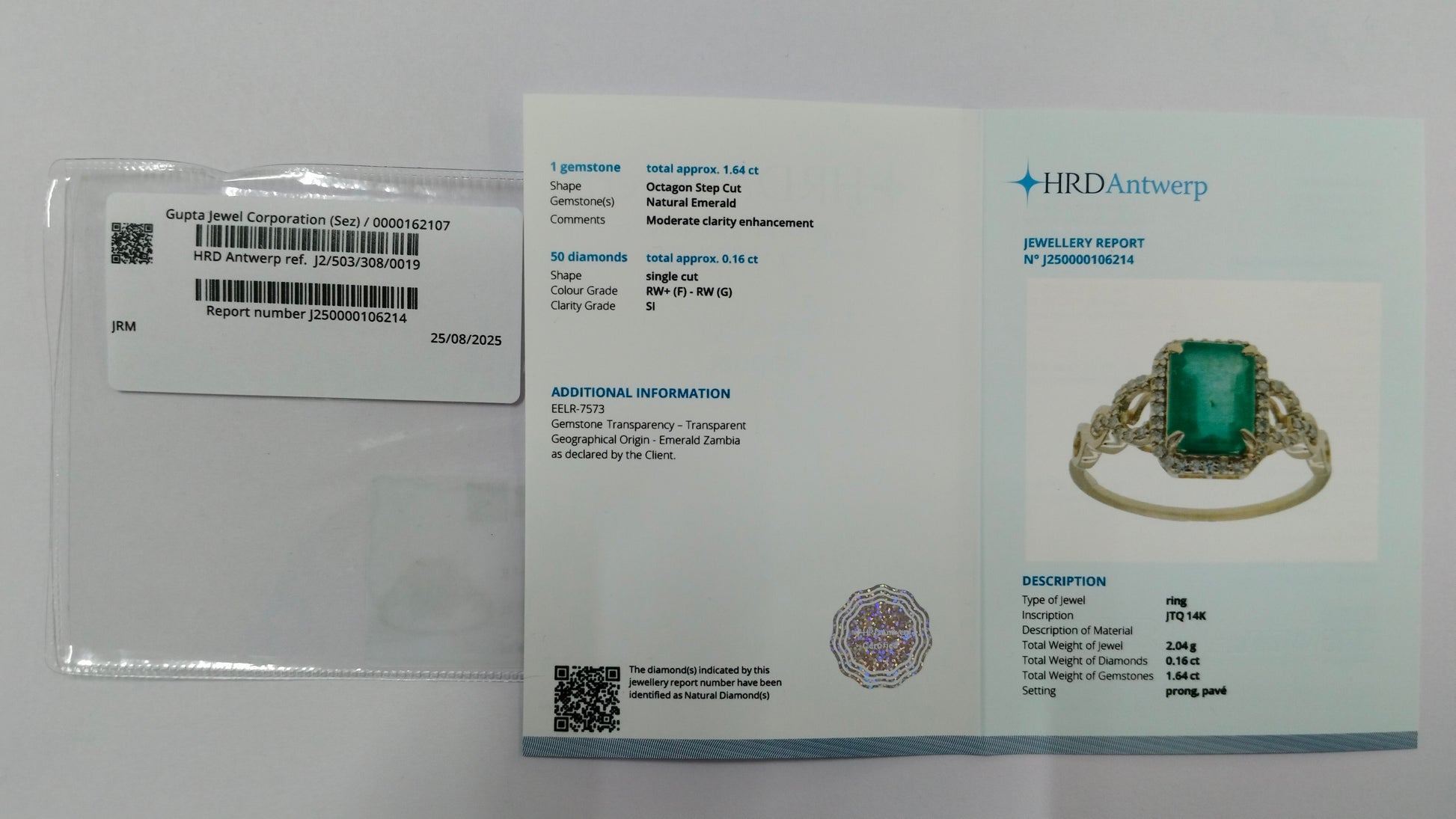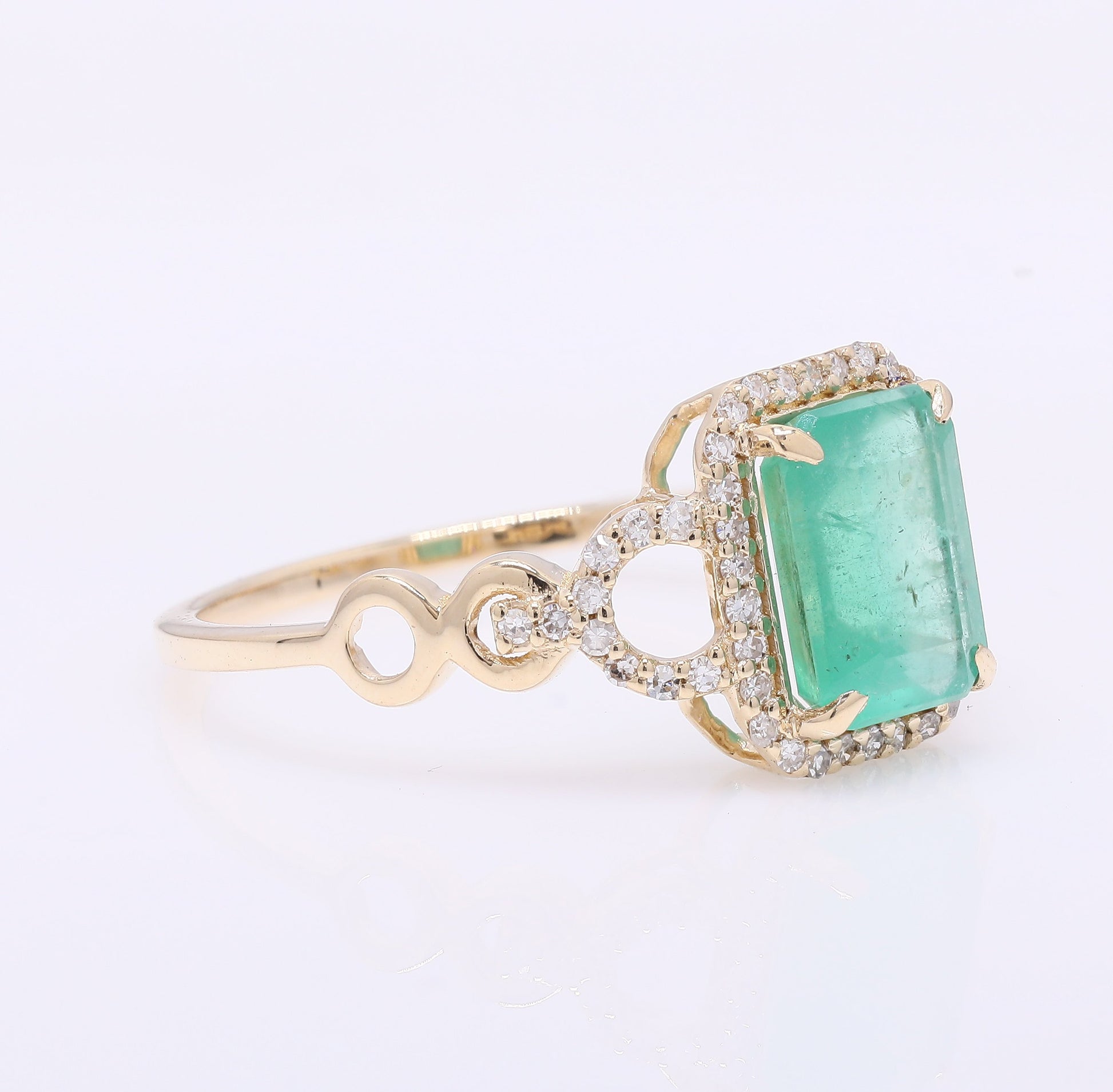 1.80 Ct Octagon Step Cut Natural Emerald 14K Gold Ring