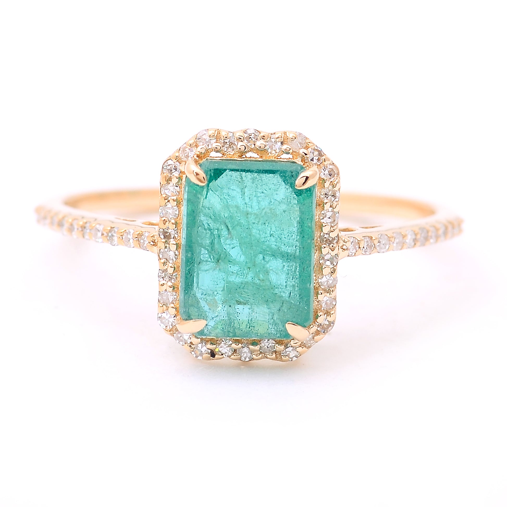 1.81 Ct Octagon Step Cut Natural Emerald 14K Gold Ring
