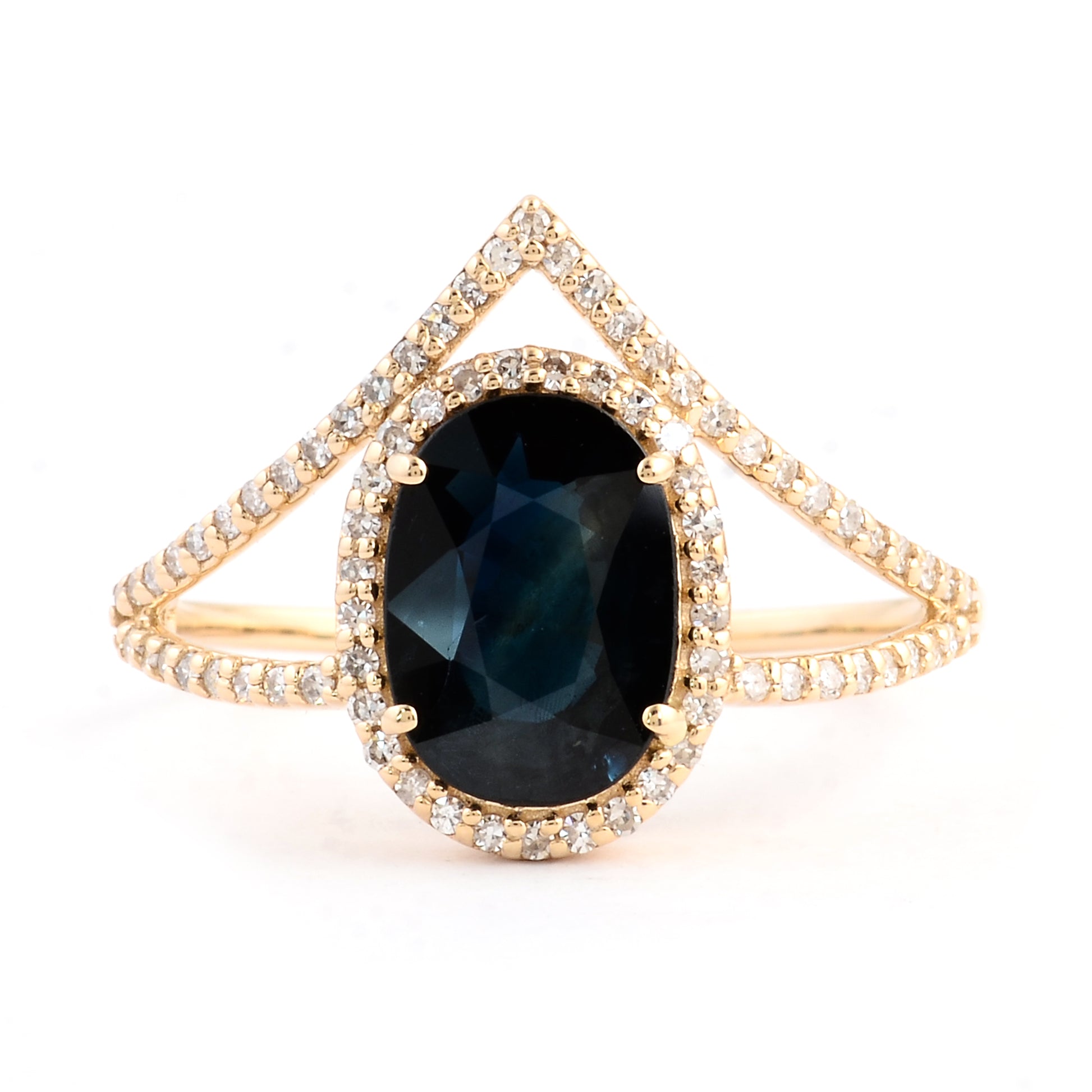 1.81 Ct Oval Mixed Cut Natural Corundum Sapphire 14K Gold Ring