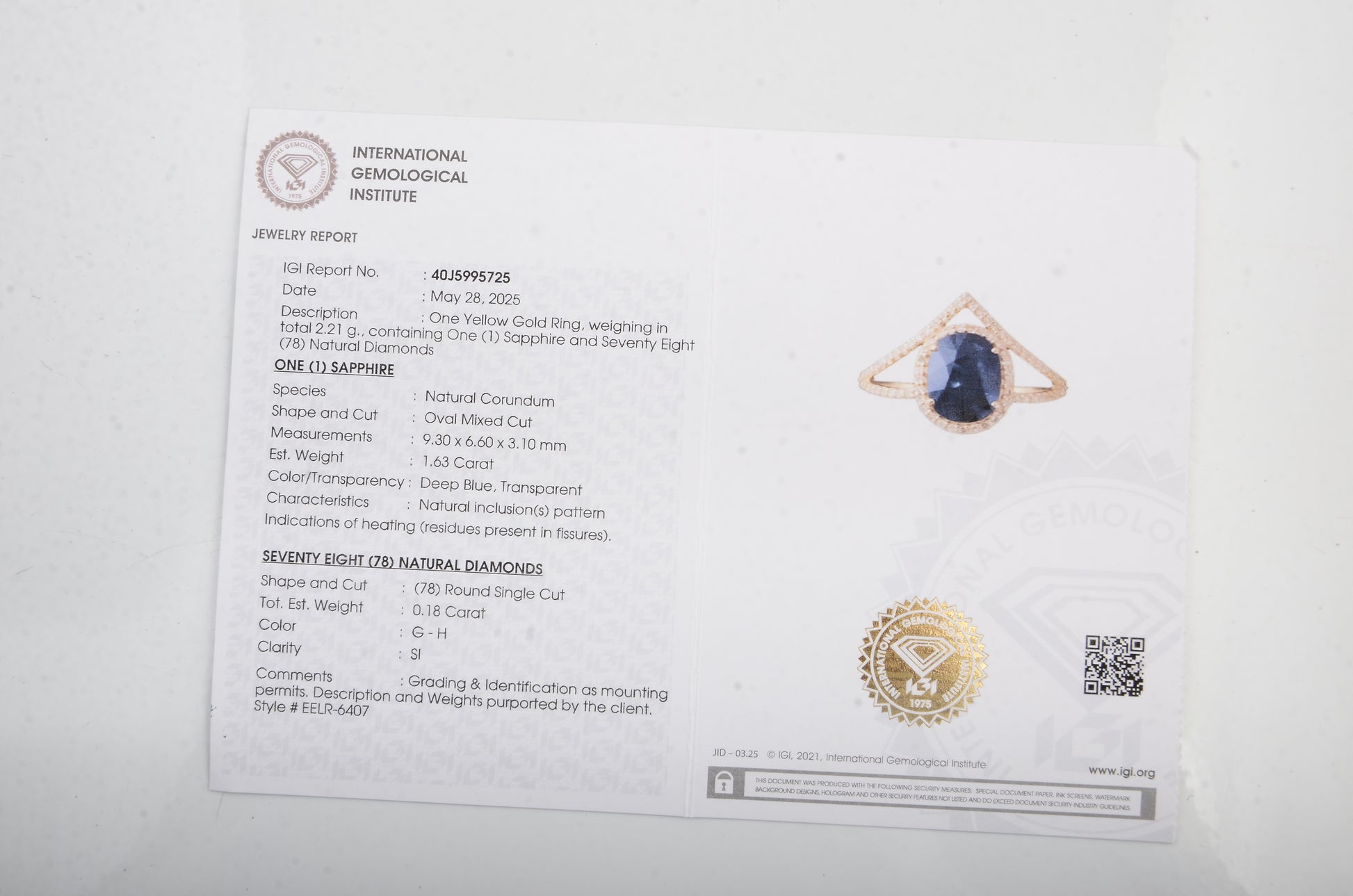 - Lab Name: International Gemological Institute (IGI)