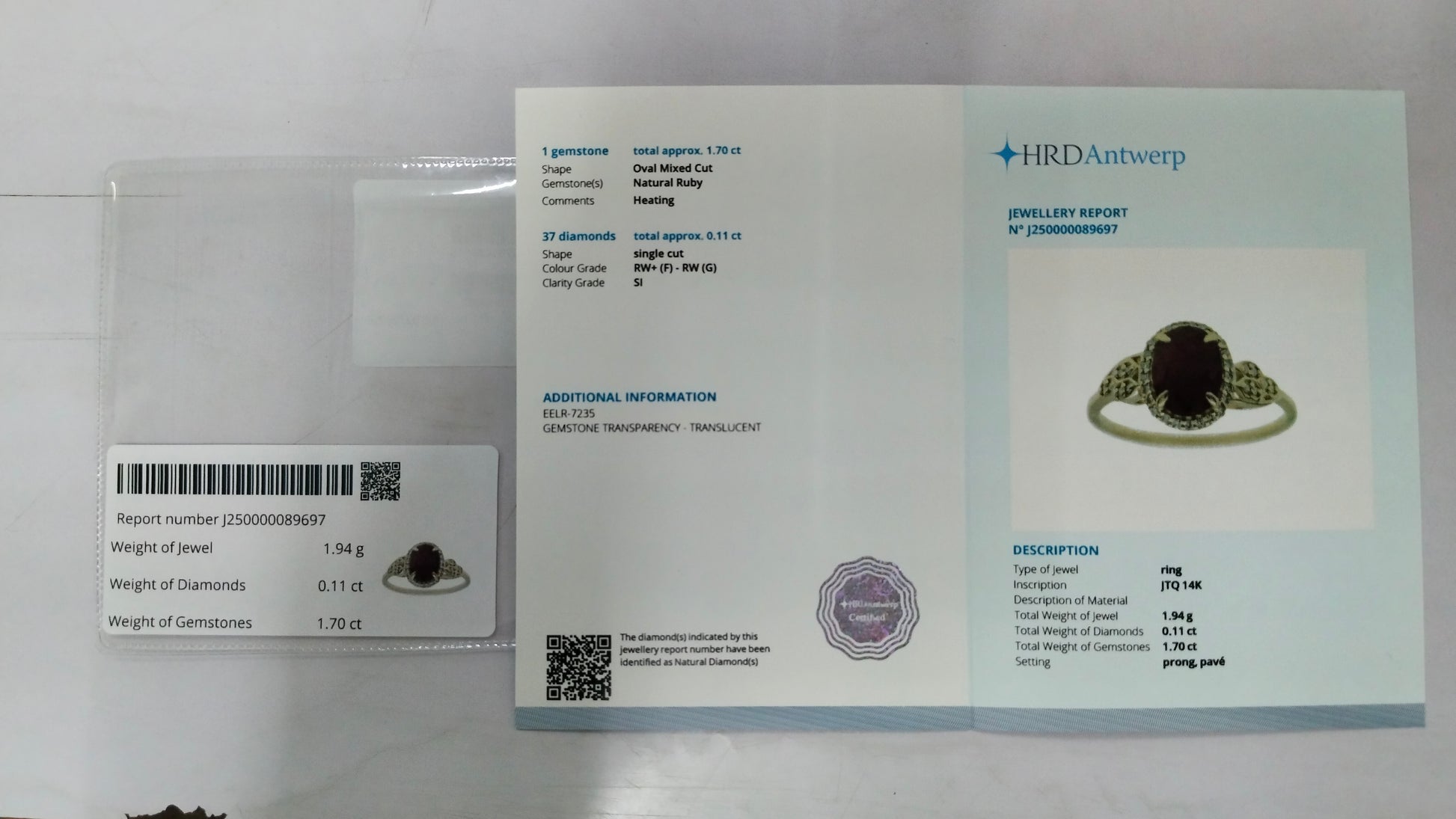 1.81 Total Carat Natural Ruby 14K Gold Ring