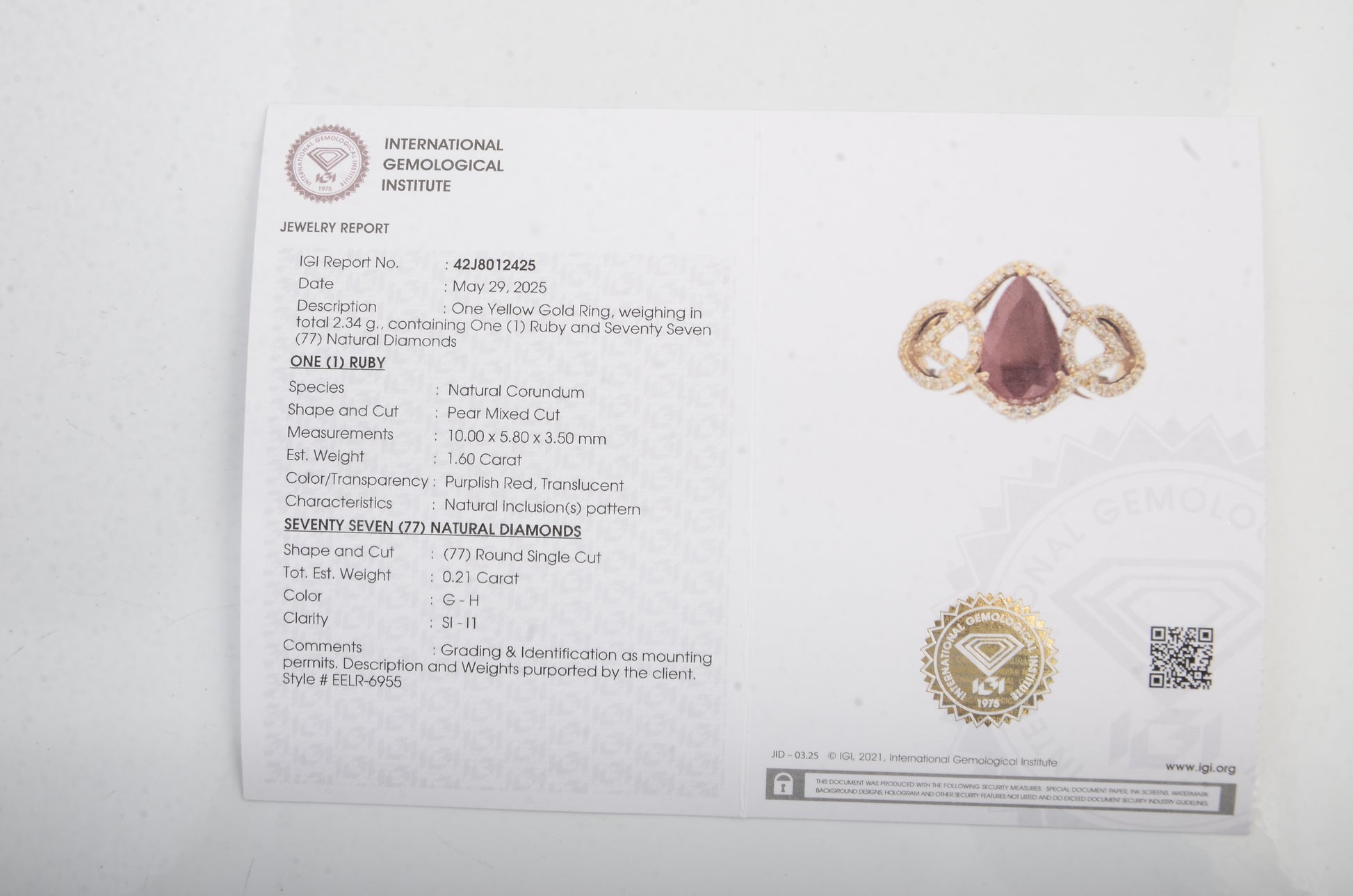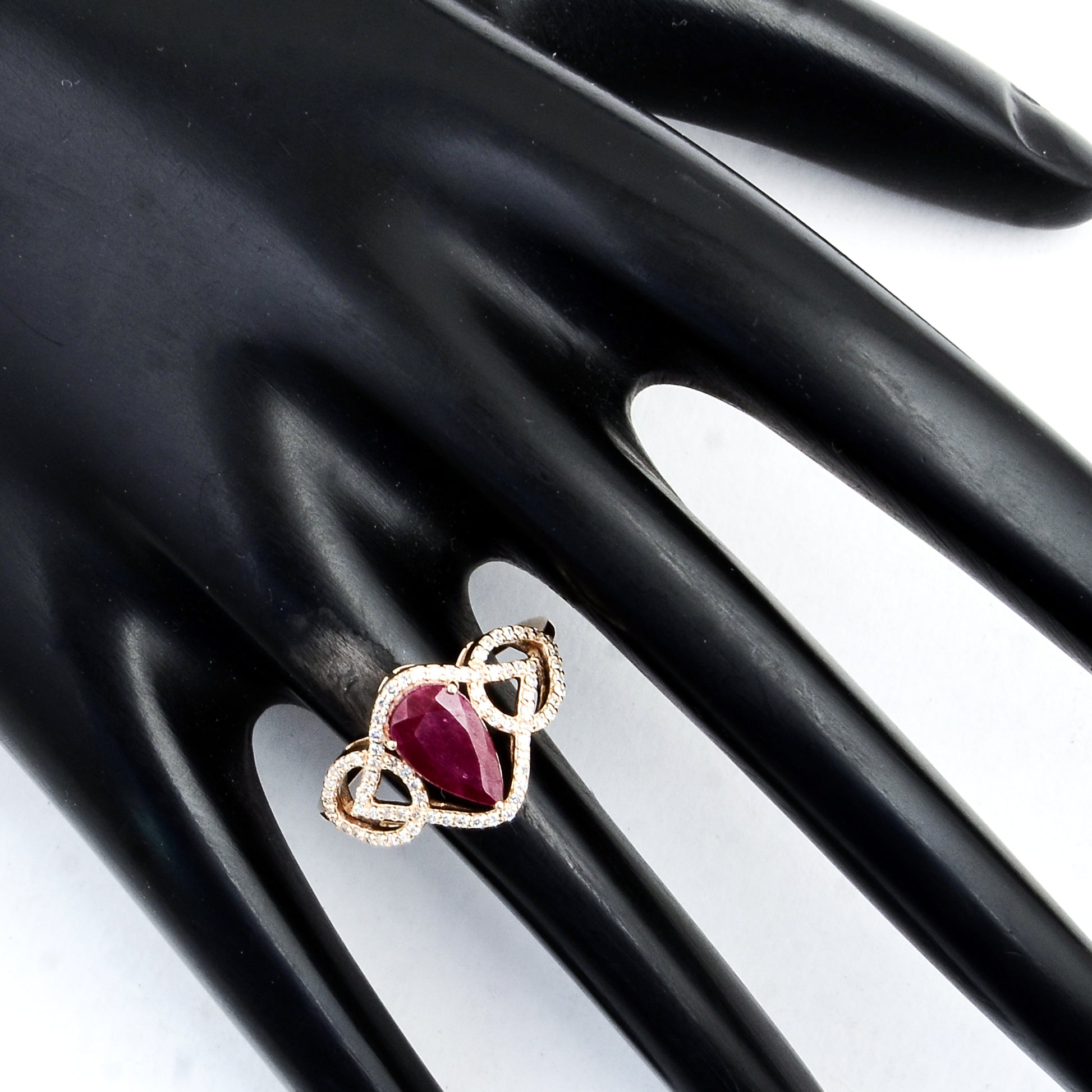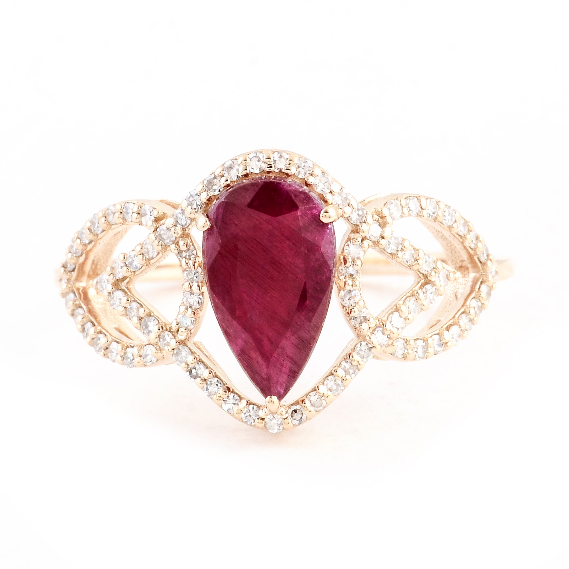 1.81 Ct Pear Mixed Cut Natural Corundum Ruby 14K Gold Ring